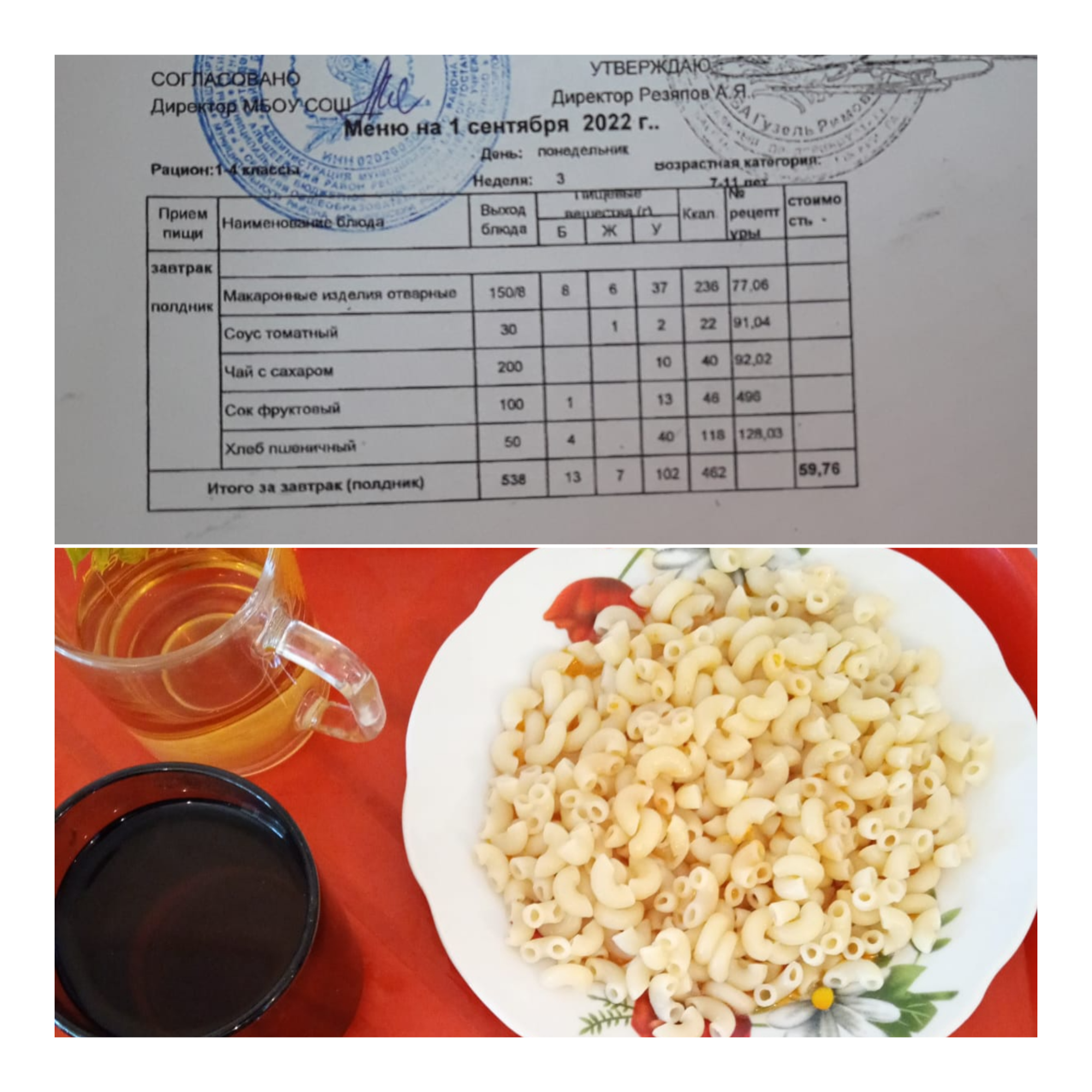 Стоимость школьного питания