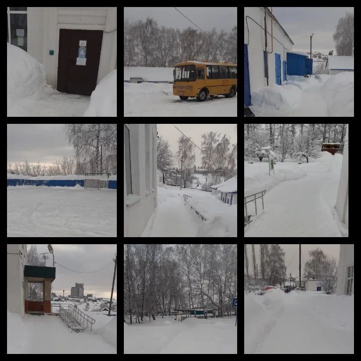 Очистка от снега, территория школы и хоккейная коробка.