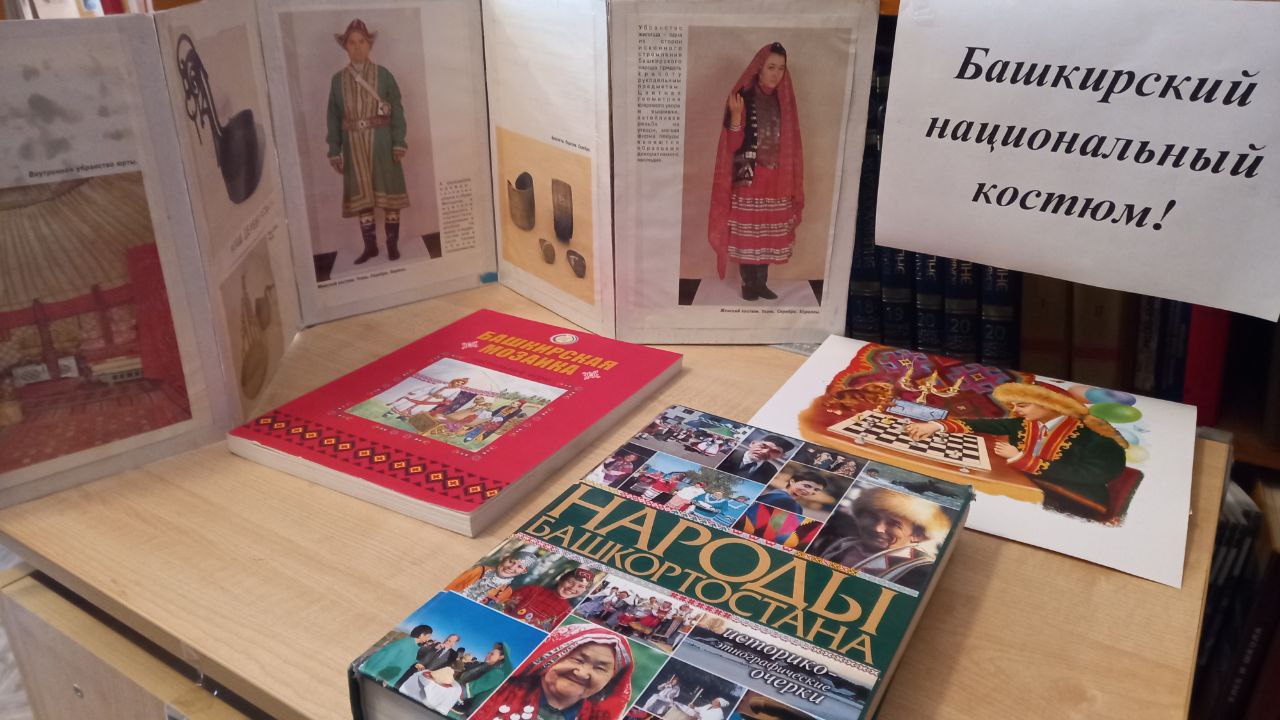 Книжная выставка "Башкирский национальный костюм", посвященная Дню национального костюма народов Республики Башкортостан.щенный Дню