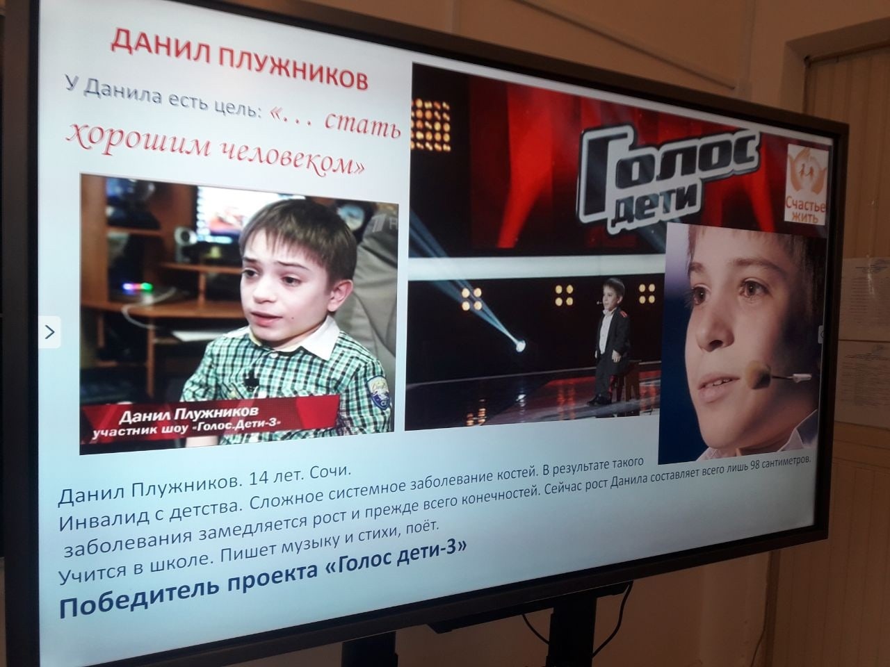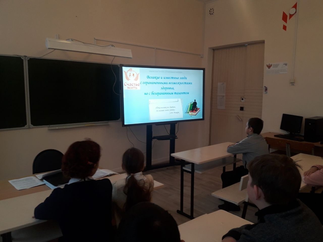 В рамках декадника, посвящённого Международному дню инвалидов, в школе прошли классные часы "Смотри на нас, как на равных" о талантливых людях с ограниченными возможностями здоровья.