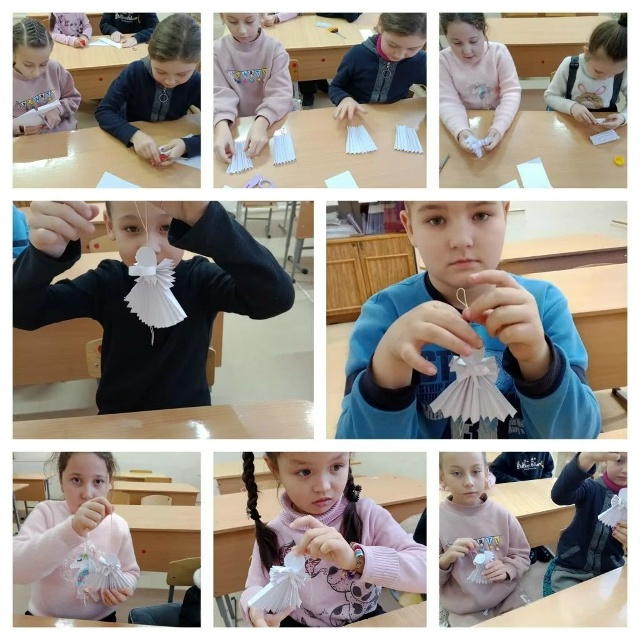В школе с Аксеново прошёл мастер -класс по изготовлению рождественского ангела. Целью занятия было помочь детям освоить нетрадиционную технику работы с бумагой, создавая Рождественского ангела.