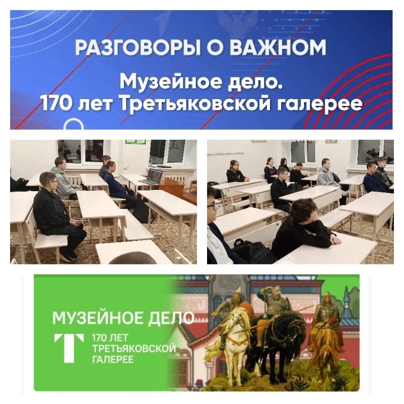 Сегодня занятия внеурочной деятельности "Разговоры о важном" были посвящены 170- летию Третьяковской галерее. Тема: "Музейное дело"