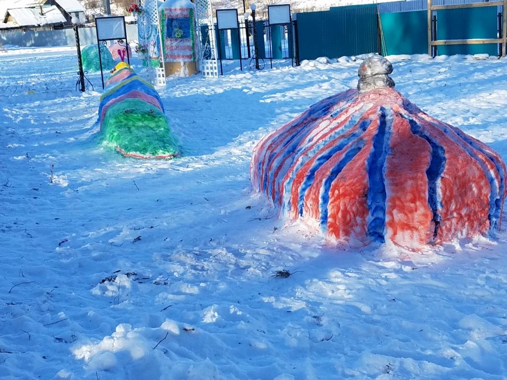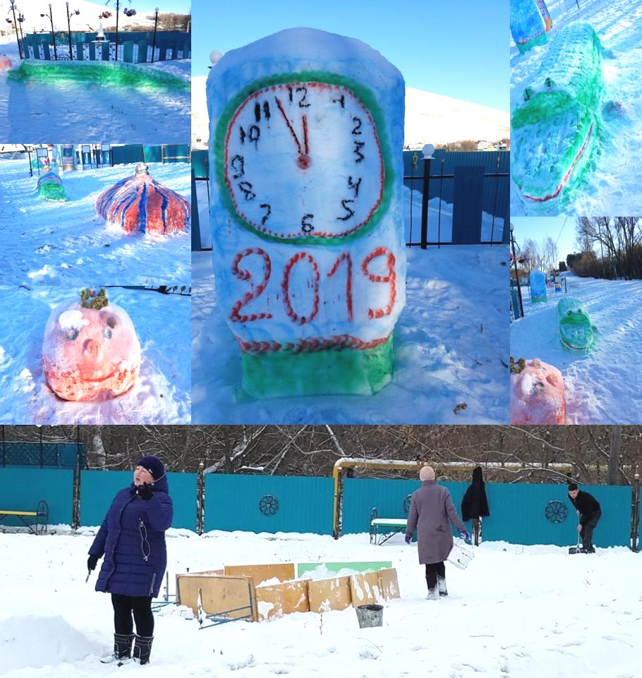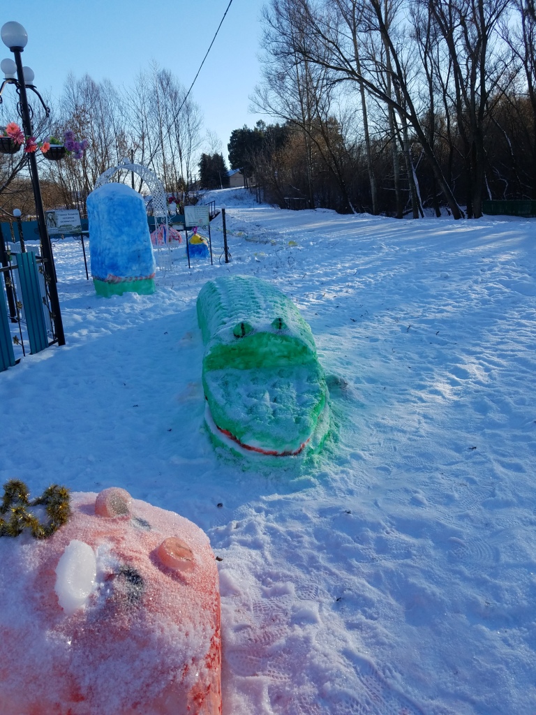 В НОШ д.Ханжарово силами родителей , учащихся и детей были сооружены "Сказочные зимние фигуры".