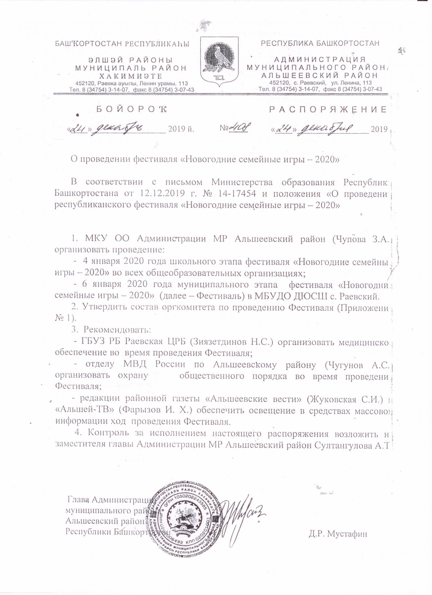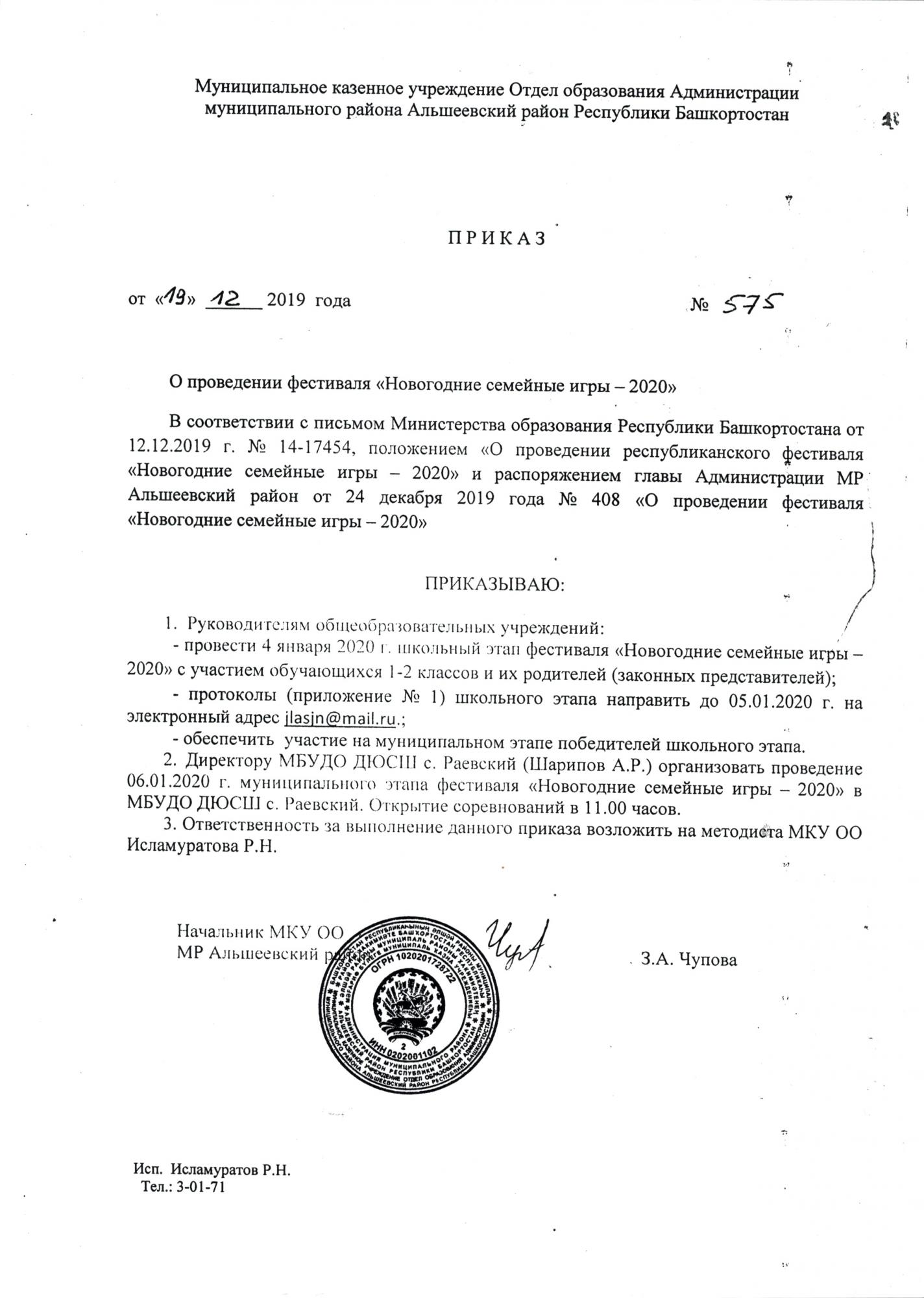 Республиканского фестиваля «Новогодние семейные игры - 2020»