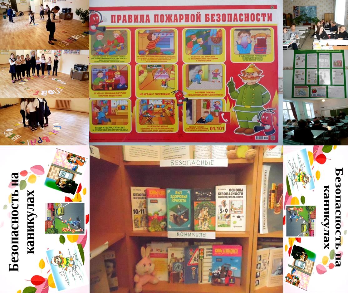 Классные руководители провели инструктажи по правилам безопасного поведения на улице во время новогодних праздников и каникул с учащимися на классных часах. С родителями на родительских собраниях так же была проведена беседа на тему безопасности детей в свободное и каникулярное время. Учитель ОБЖ Гарипов Т.Т. провел инструктаж по правилам безопасности на водоемах, железной дороге, в общественных местах. В старшем звене проведена викторина «Безопасность и Я». Библиотекарь школы Мокшина М.Б. оформила выставку "Безопасные каникулы". Во время зимних каникул по плану коллективных дел включена и проведена викторина «01- пароль отважных» Файрушиной М.У. Во время зимних каникул 1.01. 2020г. в кинозале сельской библиотеки организован показ мультфильмов «Зимний мультфейерверк» и проведена беседа об опасности использования хлопушек, бенгальских огней и фейерверков.