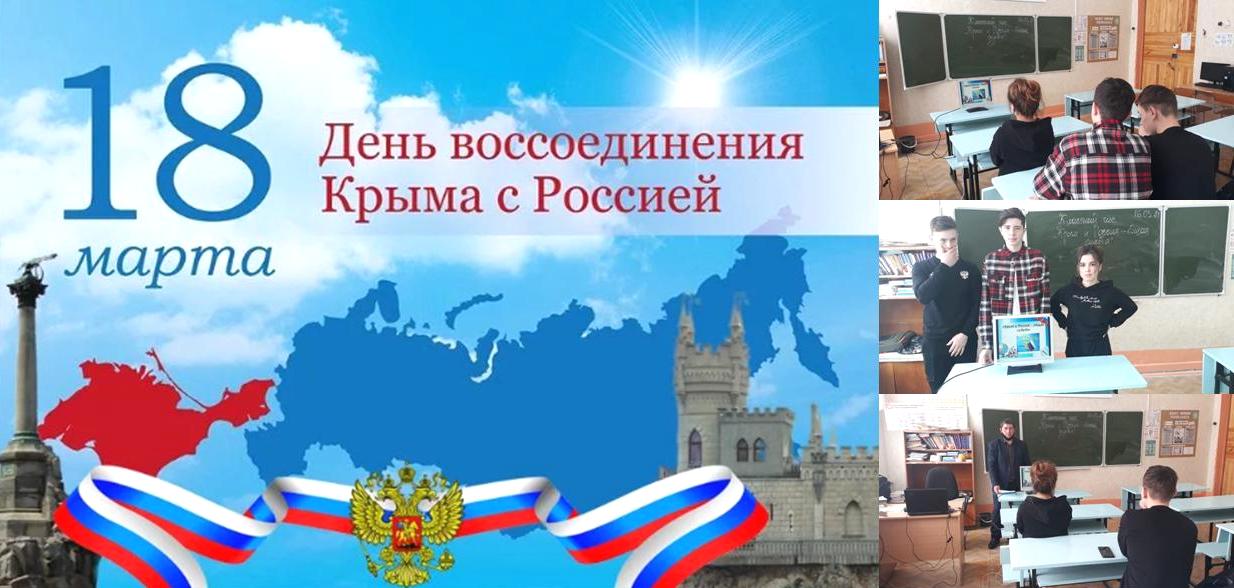16.03.2021г. в 10 классе был проведён классный час на тему: "Крым и Россия - общая судьба!".