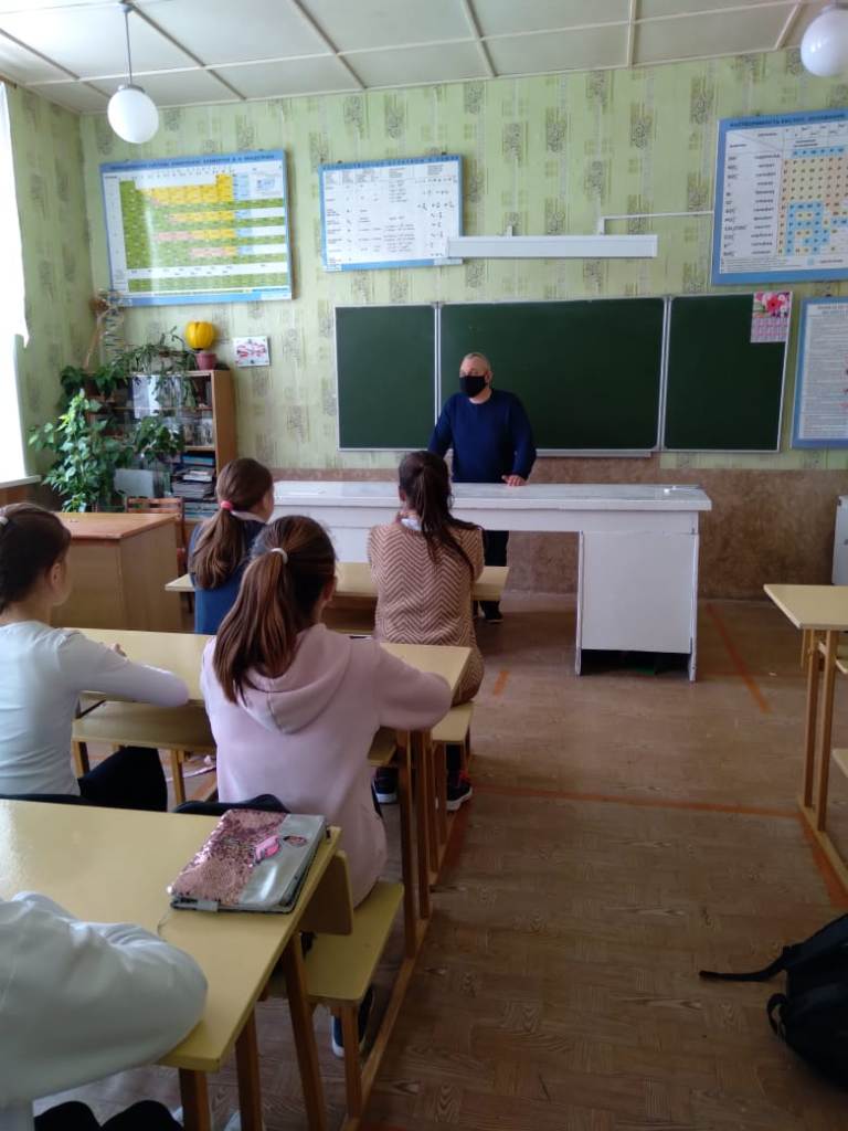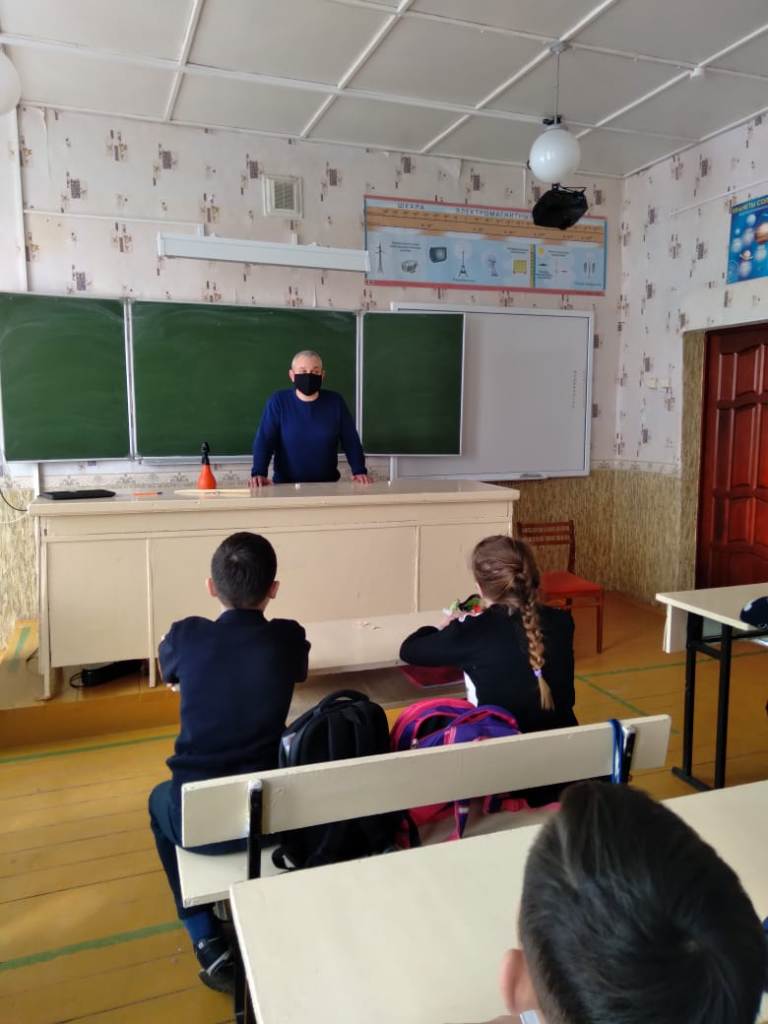 8 апреля 2021 года в МБОУ СОШ с. Аксёново прошла встреча учащихся школы с Лоншаковым В.Г. - капитаном полиции, инспектором ОДН ЛоП на ст. Аксаково по теме «Железная дорога - зона повышенной опасности».