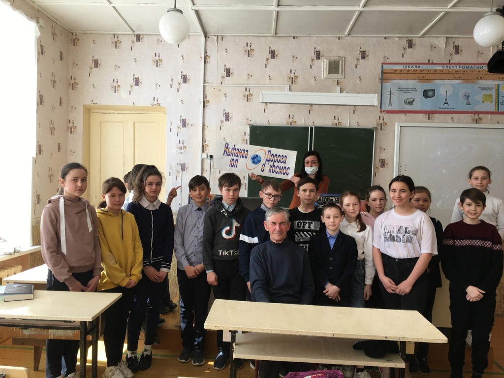 Полёт в околоземном космическом пространстве продлился 108 минут. В Советском Союзе праздник День космонавтики установлен указом Президиума Верховного Совета СССР от 9 апреля 1962 г. Этот праздник установлен по предложению второго Лётчика-космонавта СССР Германа Титова, который обратился в ЦК КПСС с соответствующим предложением 26 марта 1962 г. В этот же день отмечается Всемирный день авиации и космонавтики. Интересной и заманчивой теме космонавтике было посвящёно наше мероприятие для учащихся 5-го и 6-го классов школы с. Аксёново «Калейдоскоп интересных открытий «Безграничная вселенная». Выступил перед ребятами подполковник авиации Мельников Сергей Галактионович. Он поделился с ребятами воспоминаниями о годах учёбы в Оренбургском высшем военном авиационном училище лётчиков, о мимолётной встрече с Гагариным Ю.А., о своих друзьях из отряда космонавтов. В том числе о своём близком друге лётчике - космонавте СССР, Герое Советского Союза, полковнике Викторенко Александре Степановиче, приезжавшим в Аксёново в августе 2016г. Ответил на вопросы ребят. Особенно впечатлил ребят тот факт, что сегодня, именно в то время, когда шла наша встреча, ракета-носитель "Союз-2.1а" вывела пилотируемый корабль "Ю. А. Гагарин" ("Союз МС-18") с космодрома «Байконур» на околоземную орбиту.