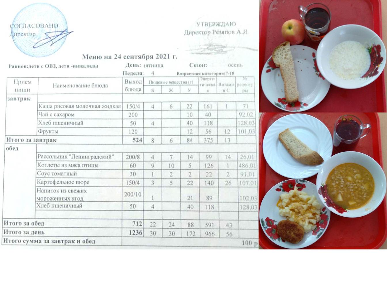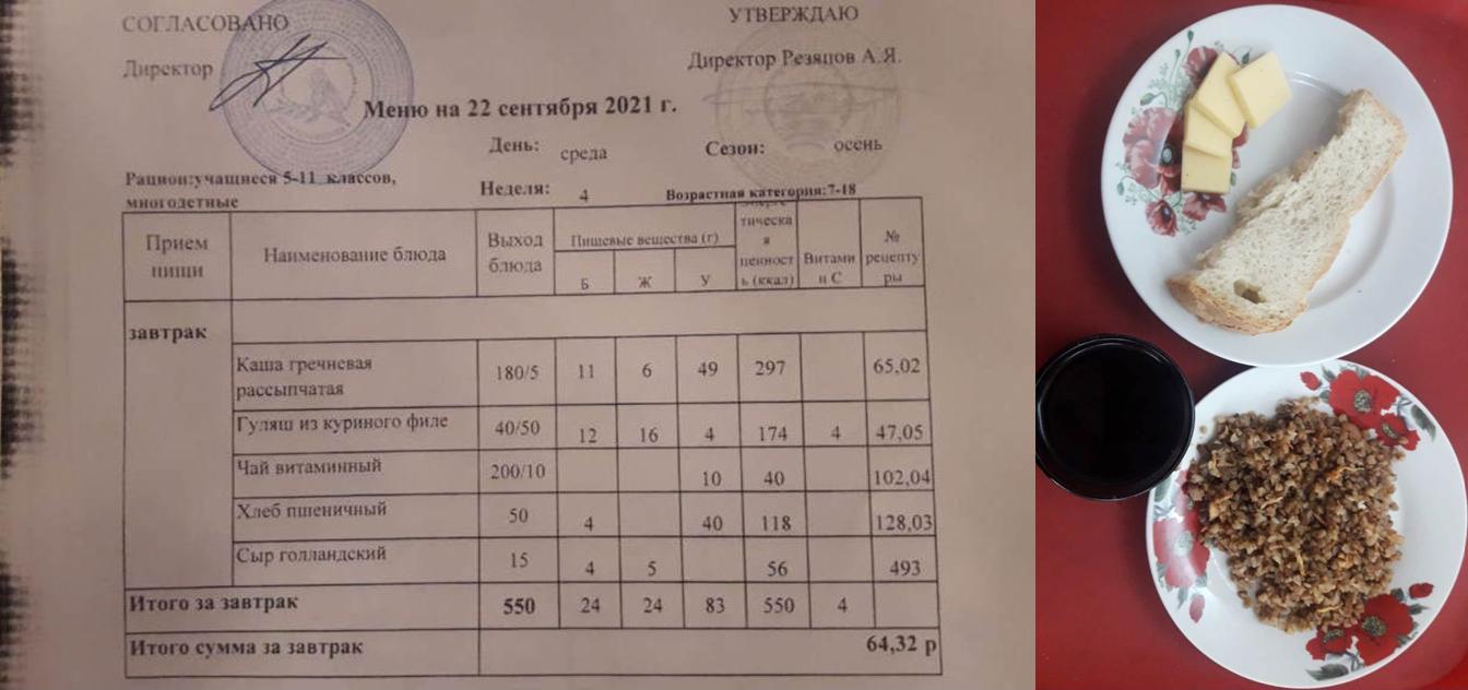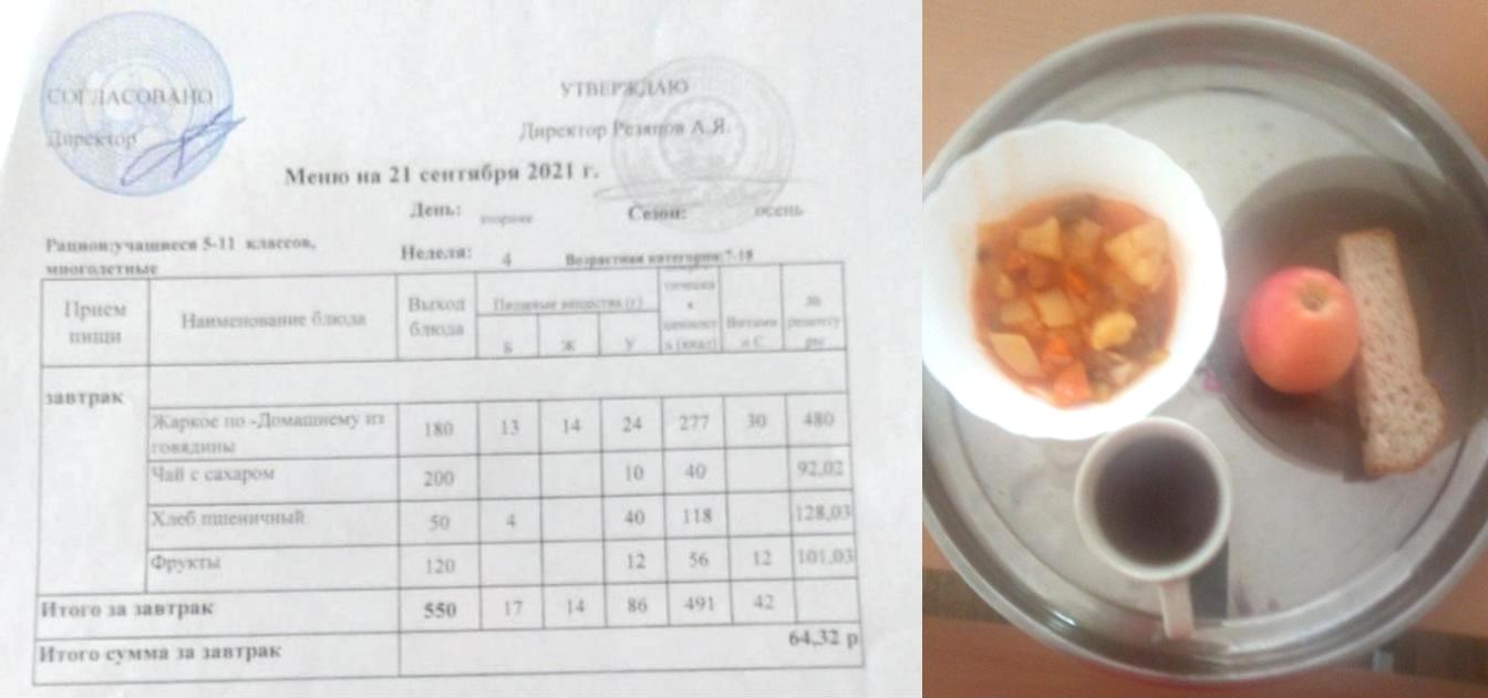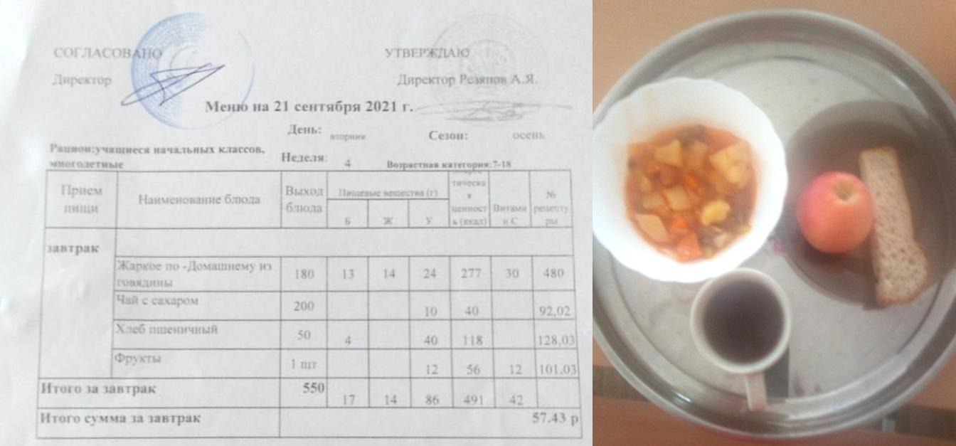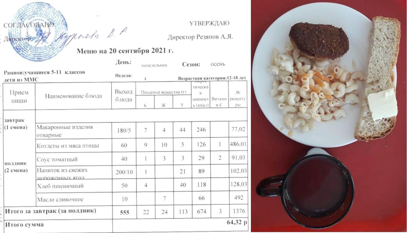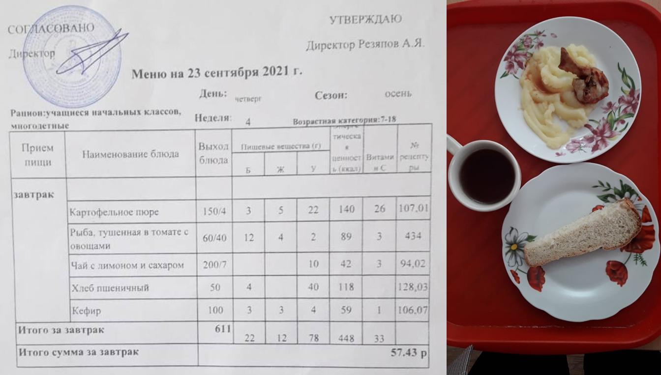 Стоимость школьного питания