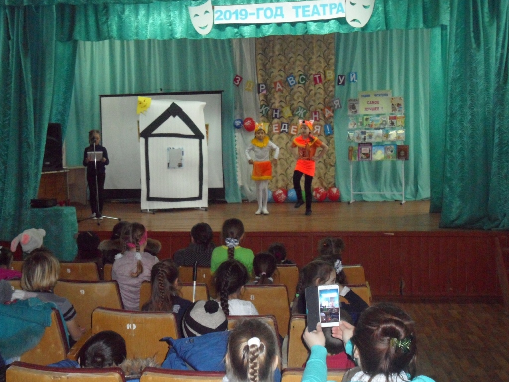Это время отдыха, игр, развлечений и, конечно же, чтения самых интересных книг. В эти дни во всех библиотеках традиционно проходит Неделя детской и юношеской книги. К открытию недели в Аксёново прошел яркий театрализованный литературный праздник «Сказочная страна», в котором приняли участие все учащиеся начальных классов. Мероприятие было посвящено Году театра и международному дню театра, который будет отмечаться 27 марта. Дети сами создали и подарили зрителям удивительный мир театра – представили сказки «Колобок», «Репка», «Теремок» и «Телефон» К. Чуковского. Со своими загадками и играми в гости к ребятам пришла Баба-Яга.
