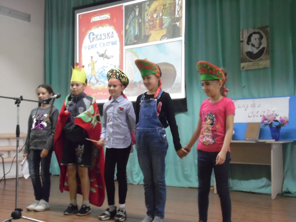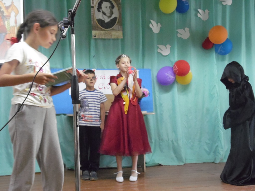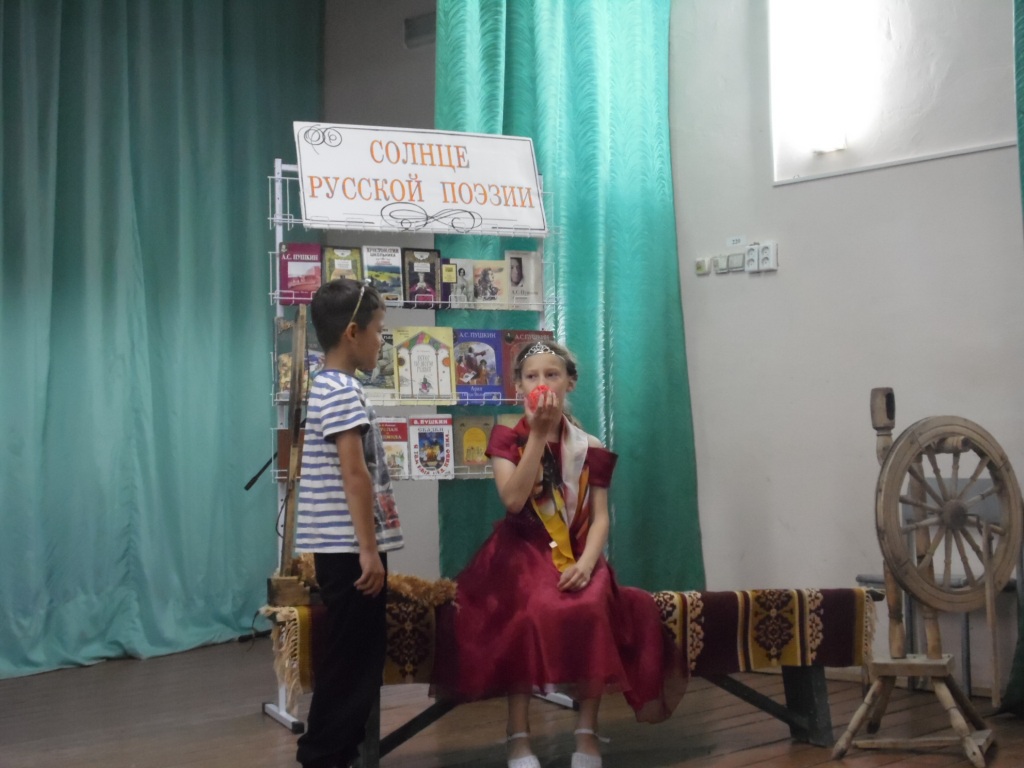 6 июня исполнилось 220 лет со дня его рождения. И сегодня в честь великого русского поэта в «Королевстве Почемучек» прошла «Минута славы». Ребята сначала отвечали на вопросы викторины, а затем желающие прочитали стихи А.С. Пушкина и показали инсценированные отрывки из его сказок. Шоу закончилось, но знакомство с героями Александра Сергеевича продолжилось. Работник сельской библиотеки Мулюкова Ф.Я. познакомила с выставкой книг «Солнце русской поэзии».