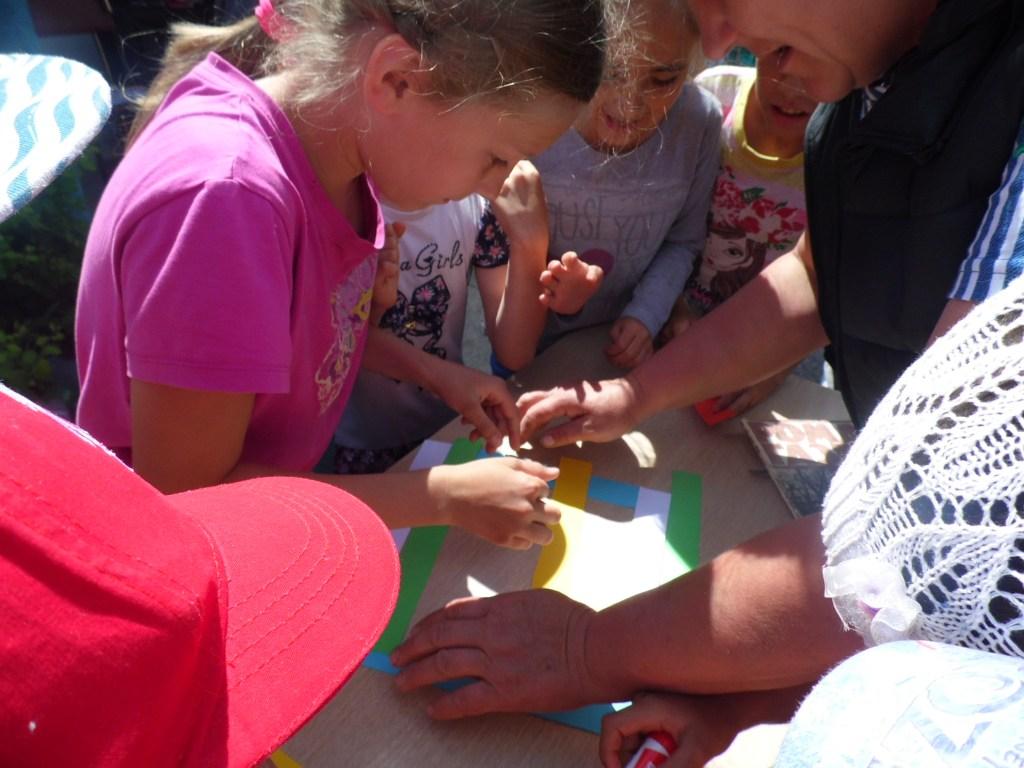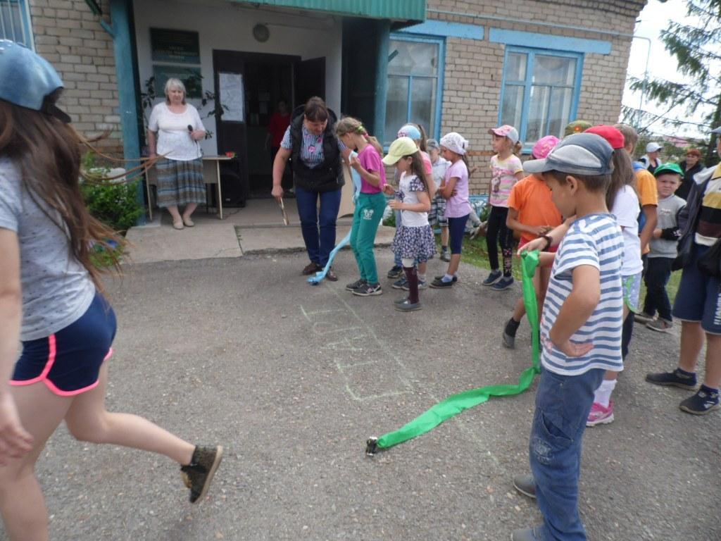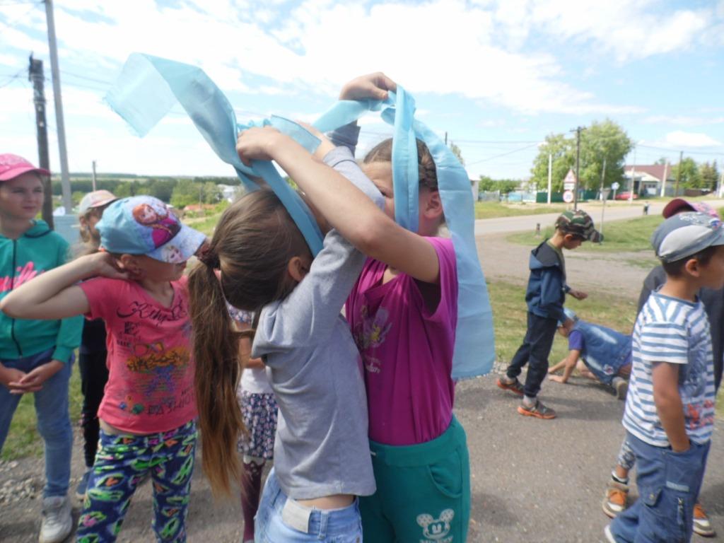 Все дети любят пошалить и сегодня им представилась такая возможность. Работники СДК провели для почемучек игровую программу «Чудо ленточка». Они бегали змейкой, завязывали бантики, плели коврики. А после обеда прошёл конкурс «Суперпугало».