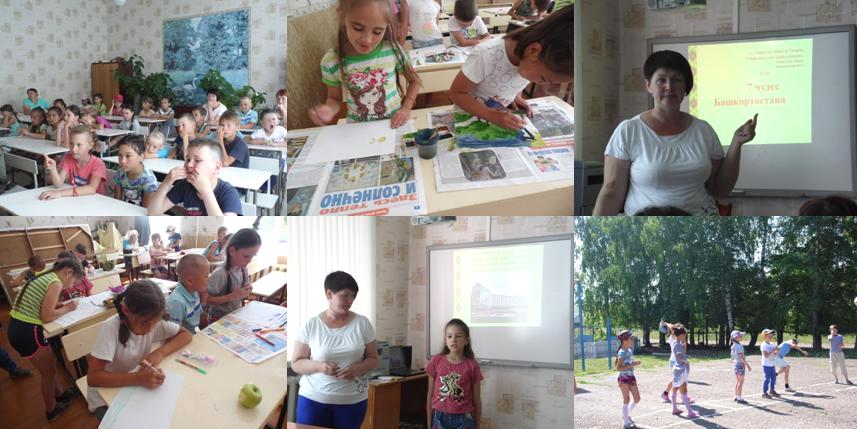 После завтрака ребята играли на свежем воздухе в «Перестрелки». Затем почемучки познакомились с семью чудесами Башкортостана. Галина Викторовна подробно рассказала о каждом чуде, и ребята посмотрели фильм о башкирском мёде. После обеда работали в изостудии. Рисовали рисунки на тему «Мой любимый лагерь». А в оставшееся время отгадывали загадки.