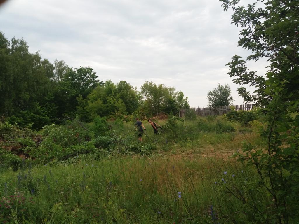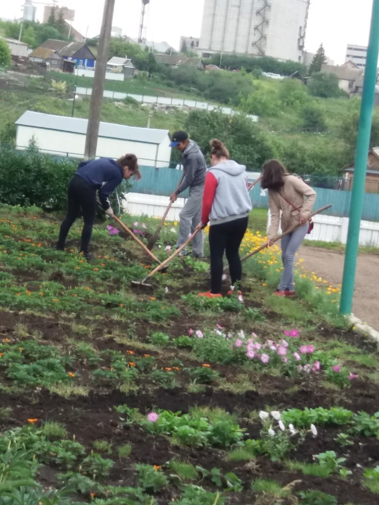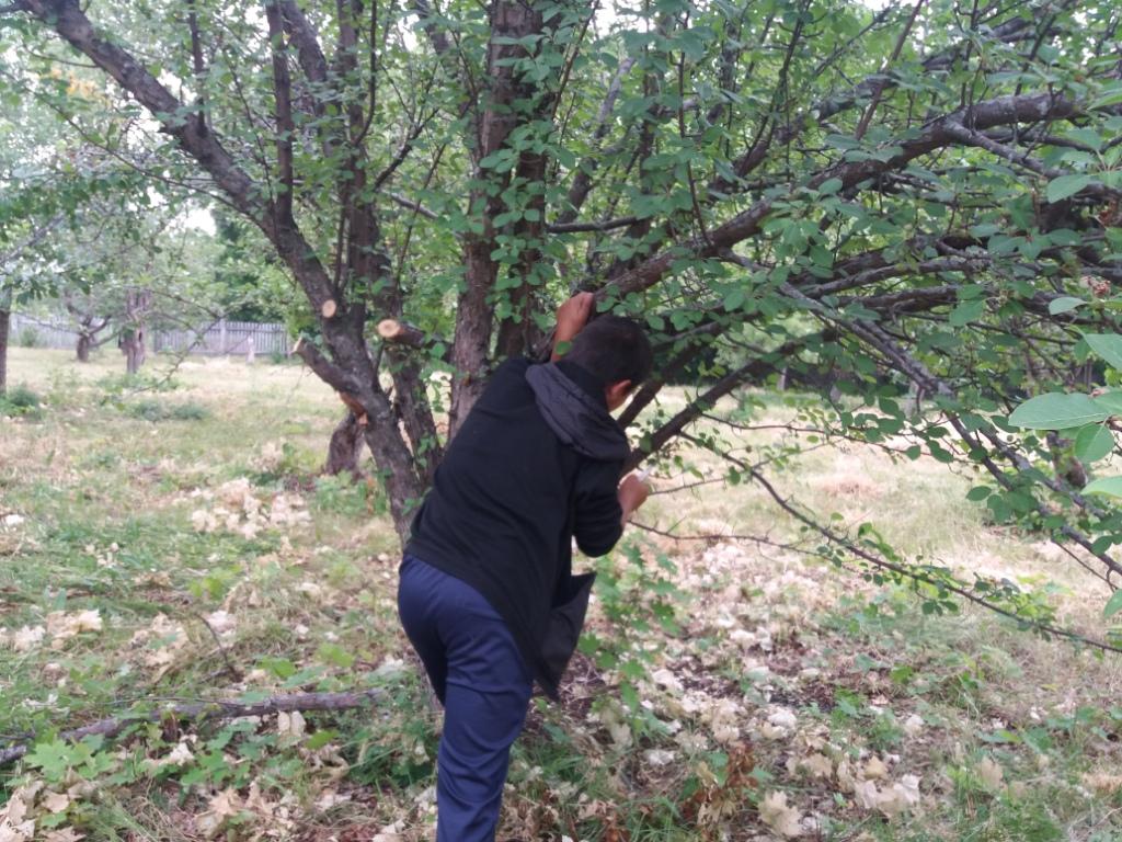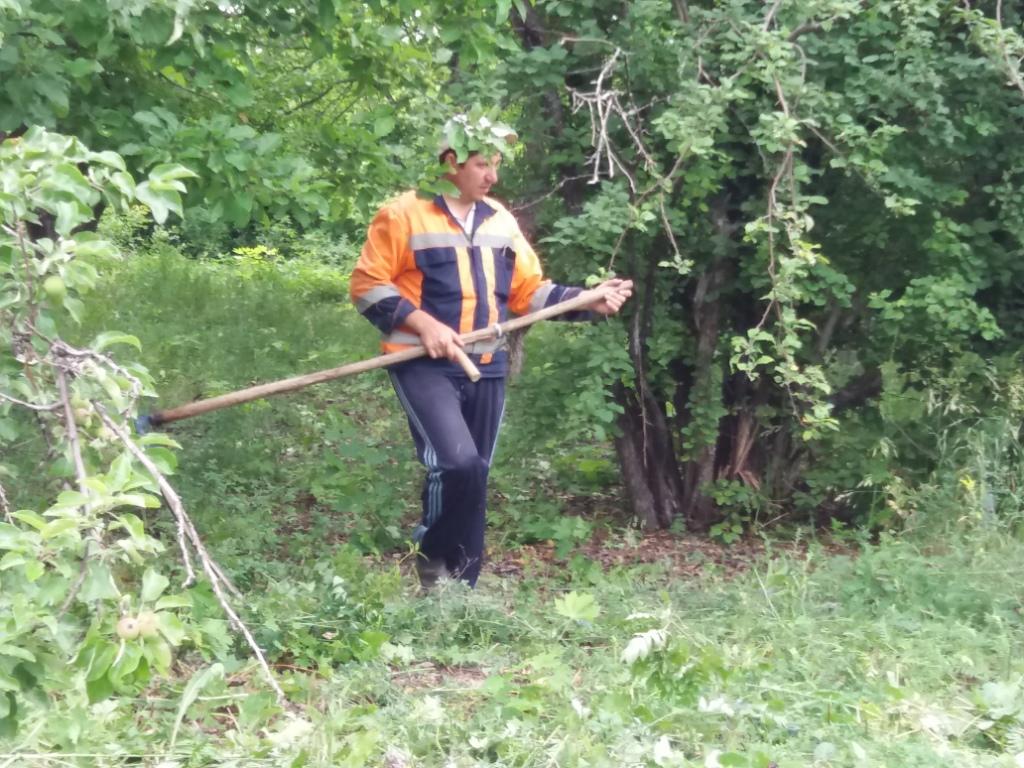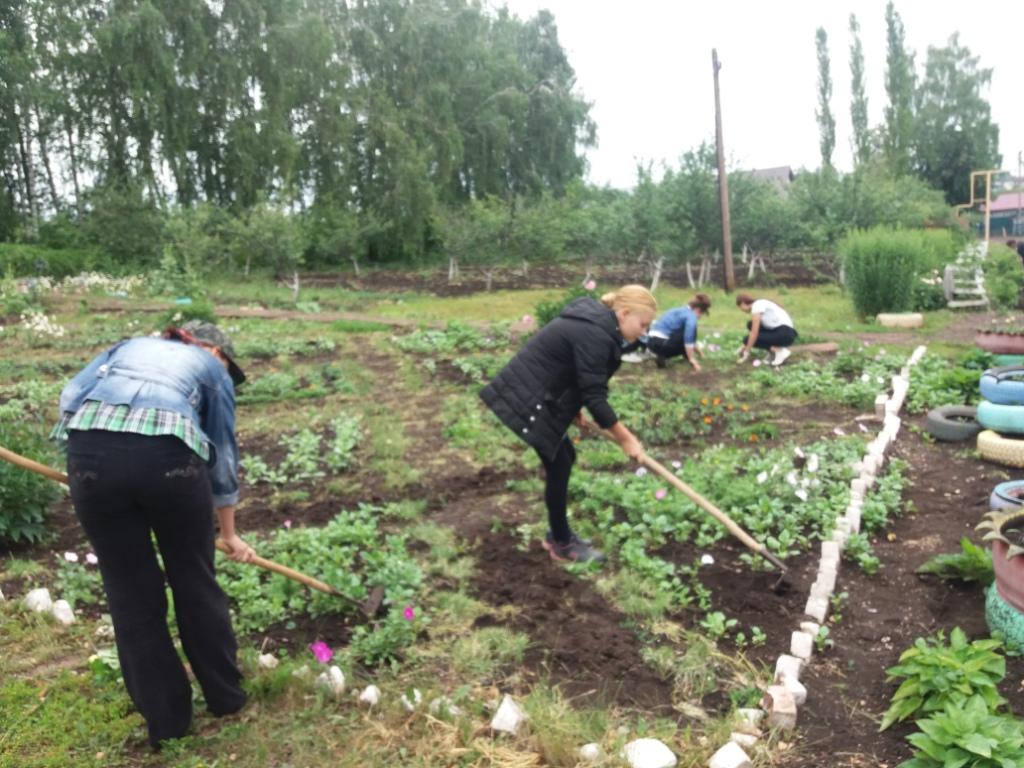 После ночного дождя день выдался пасмурным. Но, не смотря на это, как обычно ребята с энтузиазмом взялись за работу. Проредили цветы в цветниках, взрыхлили цветники, Убрали опавшие с деревьев ветки, А в саду продолжили работу по очистке плодовых деревьев от поросли и высокой травы.