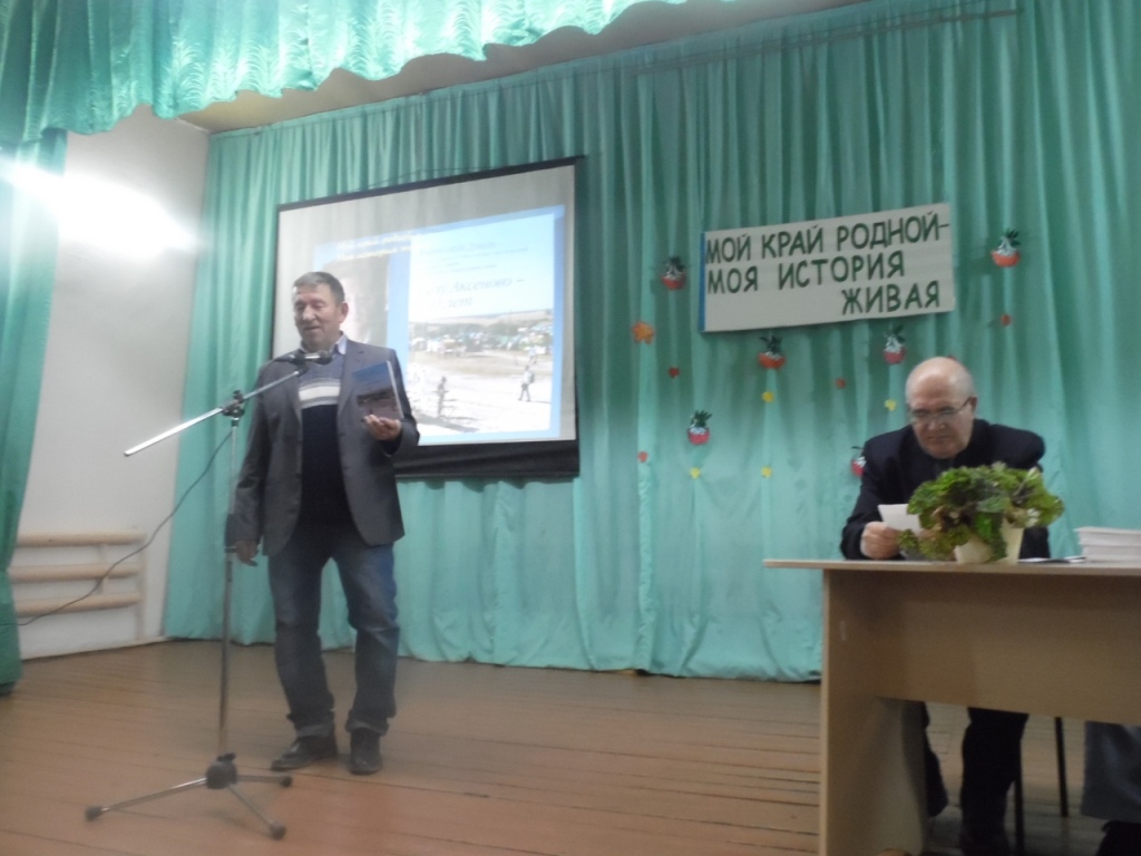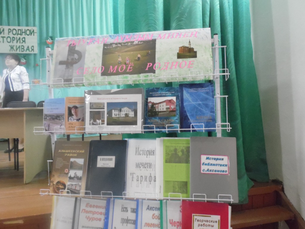 Гостями мероприятия были Шмаков В.В. известный журналист и публицист, лауреат республиканской премии им. Шагита Худайбердина, редактор общественно - политической «Независимой газеты+», и.о. руководителя МБУК «Альшеевская МЦБ» Зинатулина Н.П., поэт Ханнанова А.Н. Авторы презентуемых изданий рассказали, что побудило их к написанию книг, как они писались и создавались. Все эти три издания имеют краеведческую ценность. Как - бы итогом на сегодняшнем этапе краеведения нашего села явилась книга «Селу Аксёново – 130 лет», инициатором написания которой и редактором является Дунин А. П. В фотоальбом «Моя школа в истории и лицах» Миргазов Д.С. собрал фотодокументы о школе и её выпускниках практически с самого основания. Книга Адигамовой Р.М. вышла в формате семейной хроники. Сельская библиотека в этот день постаралась раскрыть весь свой краеведческий фонд. Была оформлена книжная выставка «Село моё родное», просмотры литературы по темам: «Они защищали Родину», «Шежере – история поколений», «Аксёново литературное» и др. Альфия Ханнанова прочитала свои стихи о родном селе.