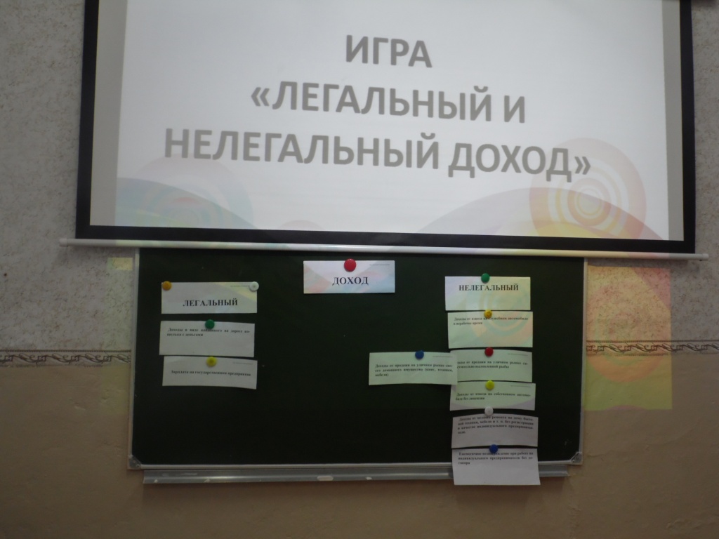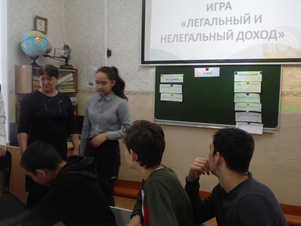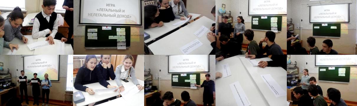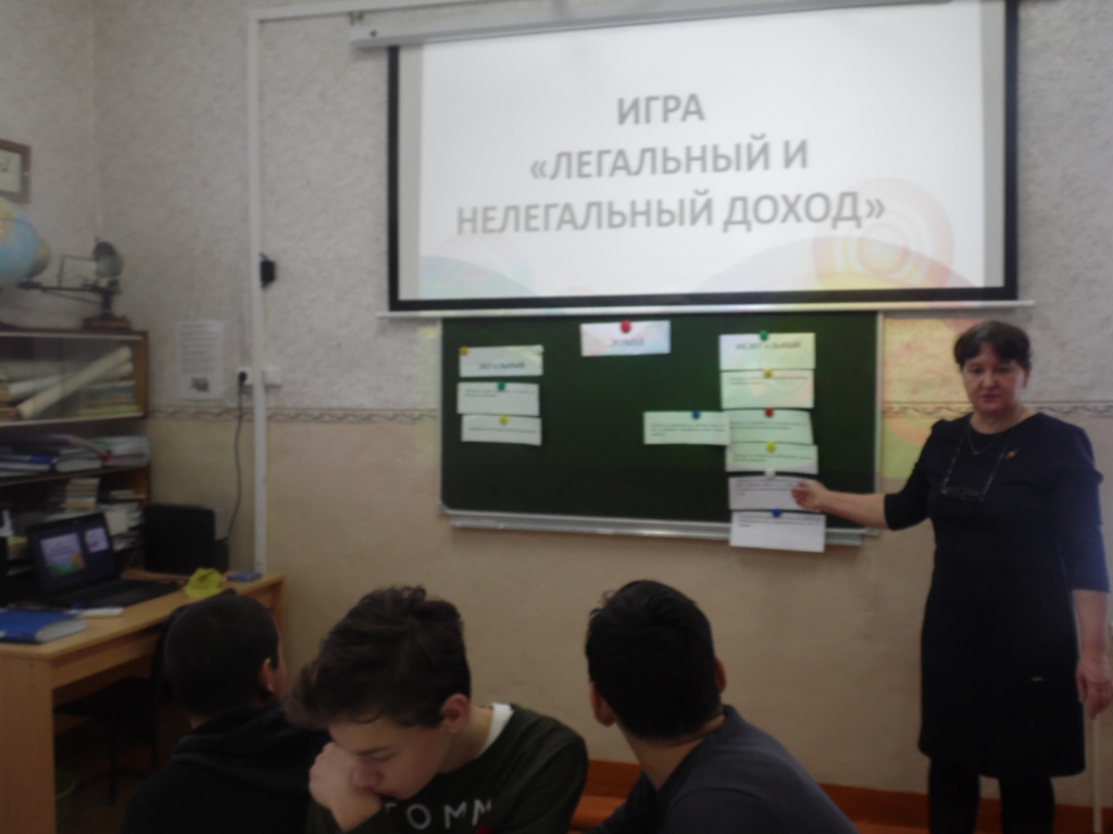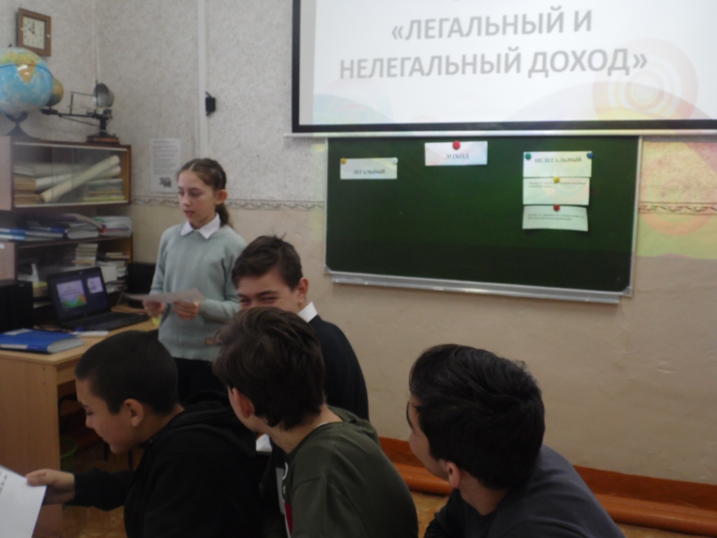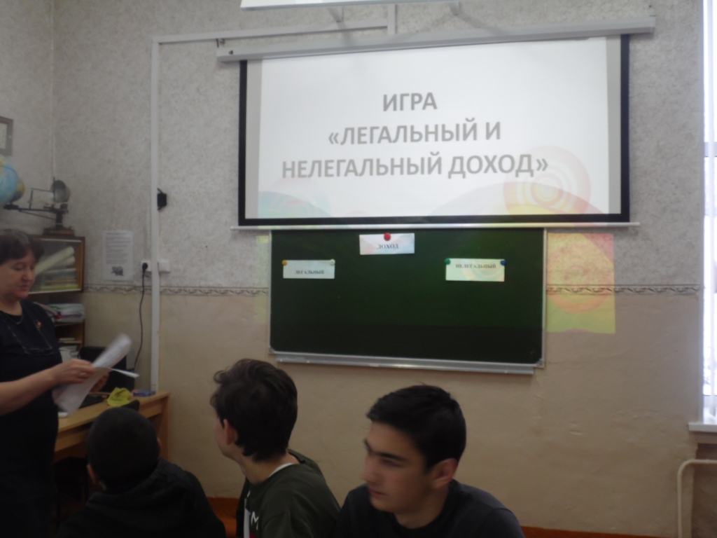 В рамках школьного проекта «Финансовую грамотность каждому школьнику»  с учащимися 8 класса проведена игра «Легальный и нелегальный доход».