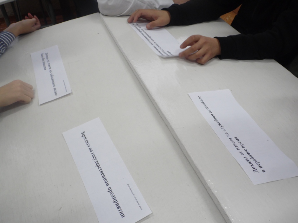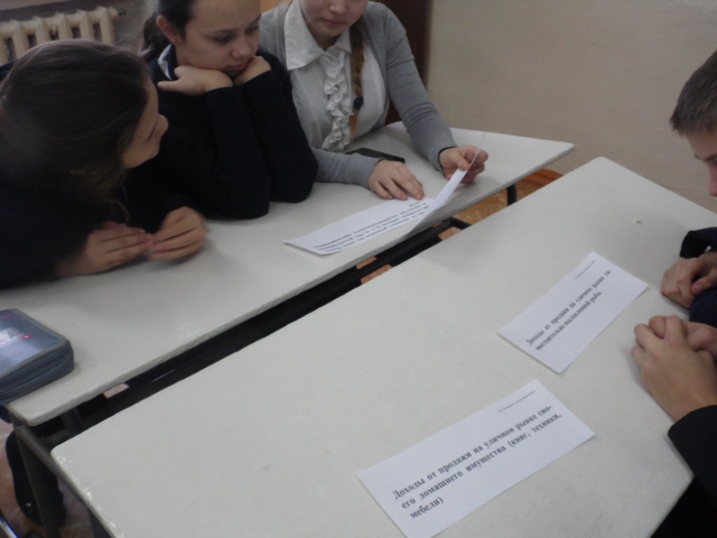 Учащиеся сортируют  карточки с источниками / способами получения дохода на законные и незаконные. В ходе сортировки ученики аргументировали свою точку зрения, задавали уточняющие вопросы.
