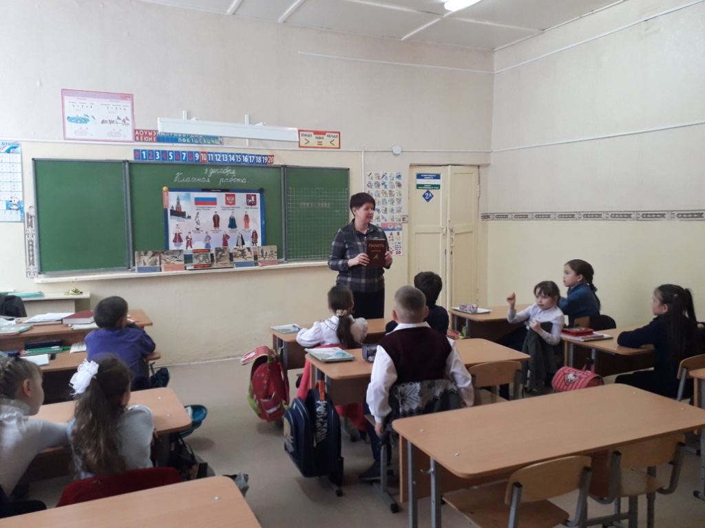 Классный час начался ответов на вопросы: кто такой герой?, Что такое Отечество. Классный руководитель рассказала о истории празднования  в нашей стране – Дня Героев Отечества. Далее Раменская Г. В. познакомила учащихся с книгами: «Они вернулись с победой », «Память» и рассказала о земляках, уроженцах Башкортостана, участниках В. О. В. Далее подготовленные дети рассказали о подвиге героев В. О. В. Александра Матросова и  Зои Космодемьянской.