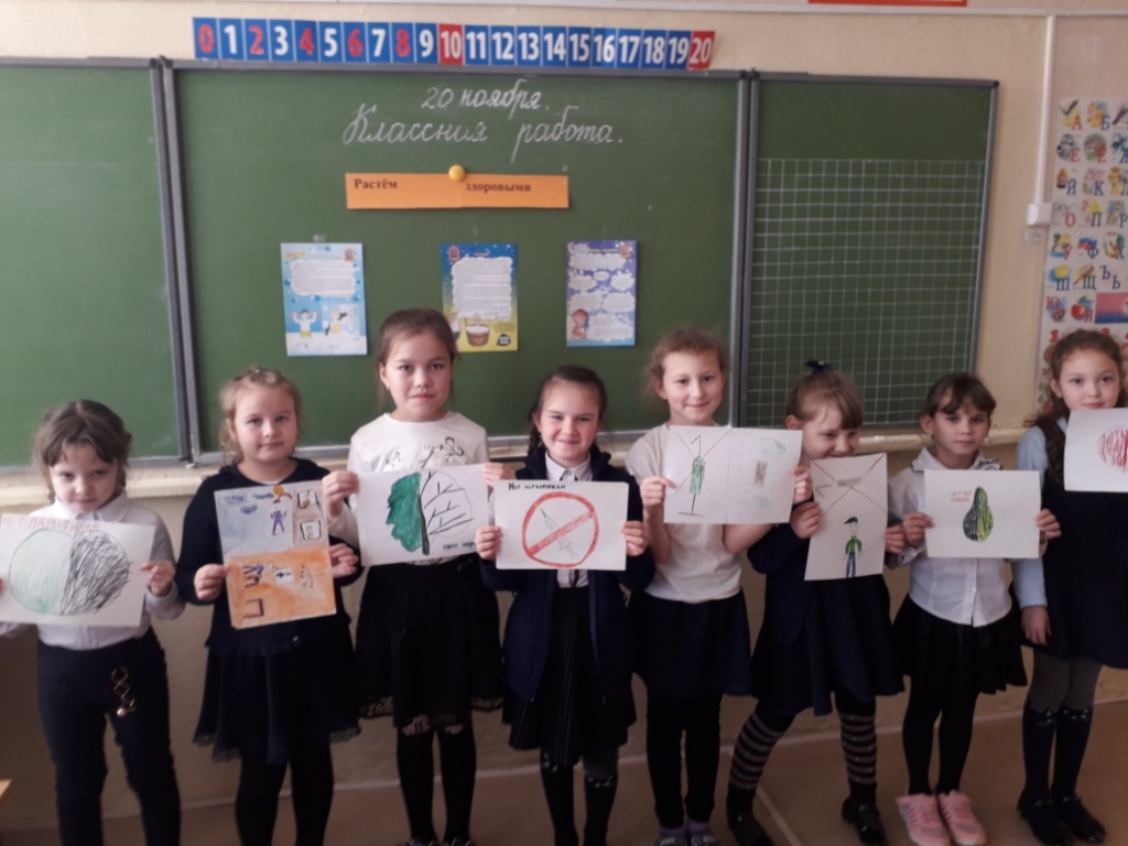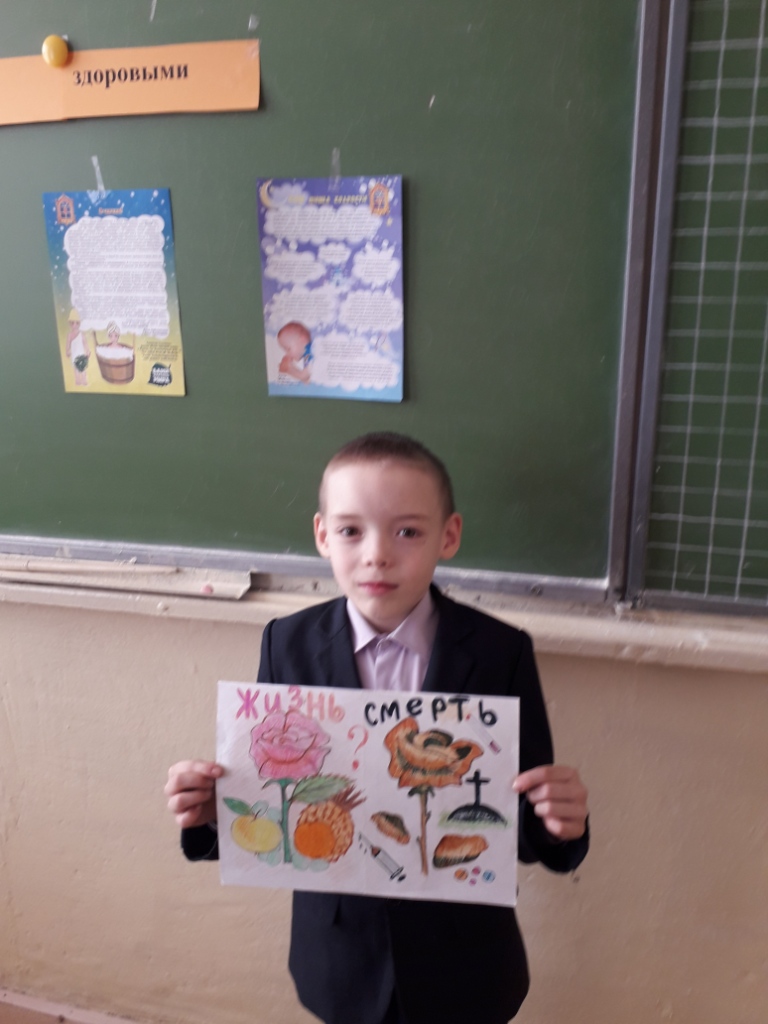 На классном часе ребята поговорили о правилах закаливания и личной гигиены, влияние полноценного сна на здоровье человека. Затем Раменская рассказала в доступной форме ученикам о наркотиках, их пагубном влиянии на здоровье. Дети представили свои рисунки « Нет наркотикам!»