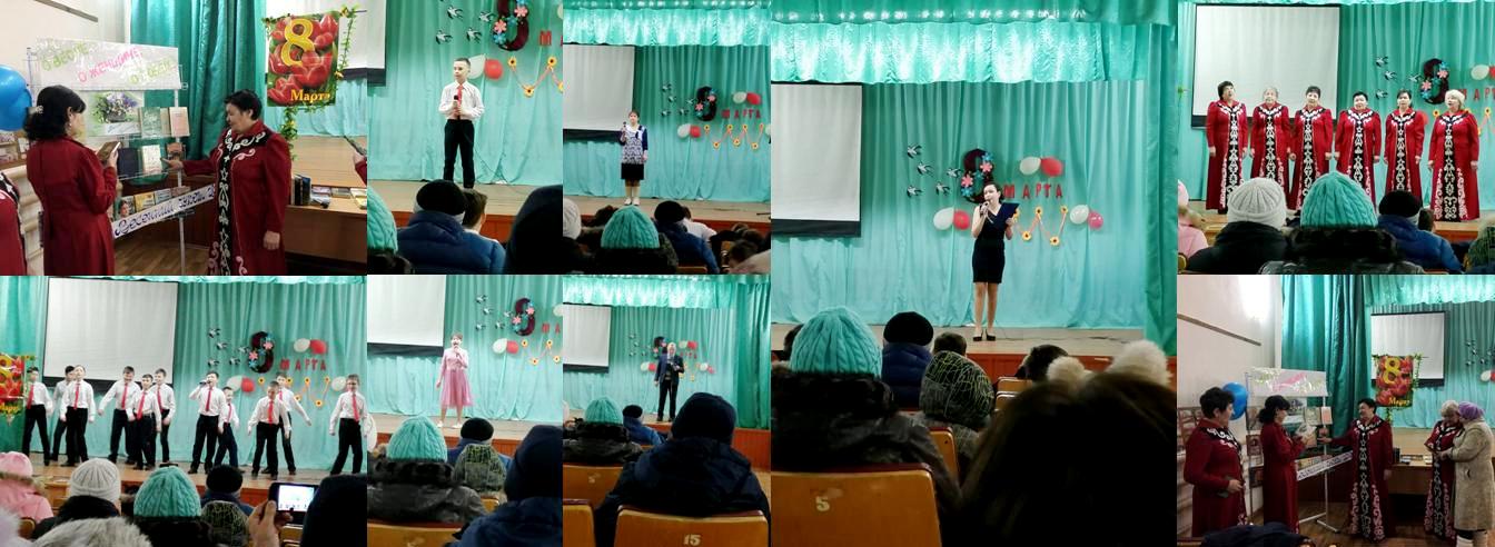 Сельская библиотека к празднику организовала открытый просмотр литературы «Весенний букет женского романа», Музыкальные поздравления для любимых мам, бабушек и всех женщин прозвучали в этот день. Собравшиеся зрители тепло приветствовали аплодисментами артистов. Весь праздник был признанием в любви женщинам, со сцены не раз звучали слова благодарности, поздравлений и пожеланий, адресованных тем, кто наполняет нашу жизнь своим теплом, красотой и заботой.