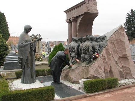 9 мая 1989 г. на муниципальном кладбище Фуэнкарраль в одноименном районе Мадрида торжественно открыт памятник советским добровольцам, погибшим в Испании в годы гражданской войны. Композиция представляет собой незавершённую триумфальную арку, символизирующую, что первое противостояние фашизму не принесло успеха. Под аркой массивный камень-алтарь. Плоскость его расположена под углом к горизонту и имеет очертание географической карты Испании – страны, в землю которой невозвратным маршем уходят интернационалисты. Скульптурное изображение колонны советских добровольцев провожает фигура женщины – олицетворение матери-Родины. Монумент воздвигнут над символической могилой. Франкисты не сохранили не только реальные могилы павших советских воинов, но и данные о местах захоронения. Венчает мемориал надпись на русском и испанском языках «Памяти советских добровольцев 1936-1939 г.г.». На боковой стороне памятника высечены имена 182 погибших добровольцев.