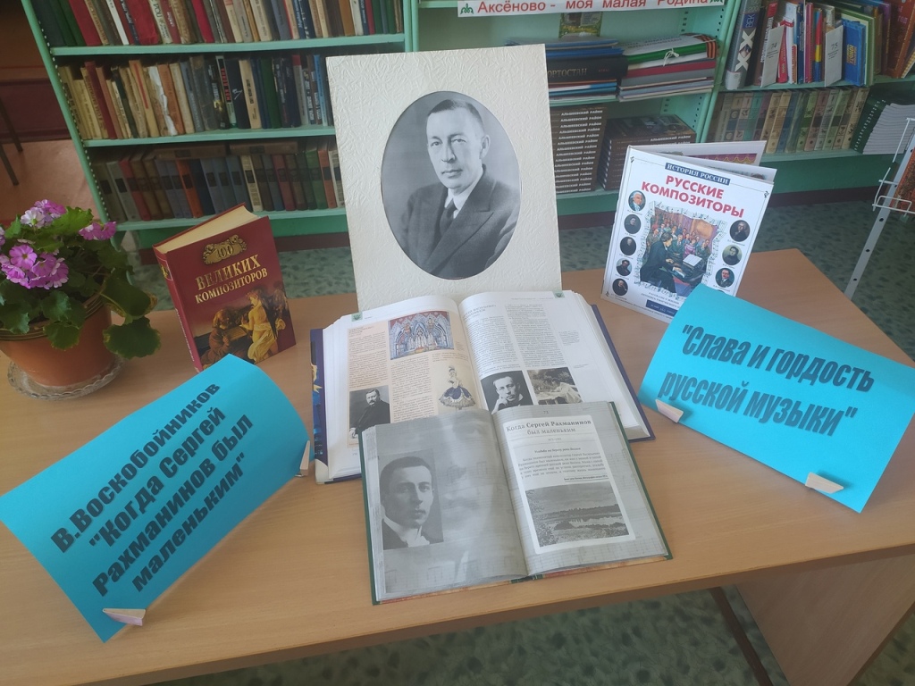 В библиотеке для читателей оформлена книжная выставка-обзор «Слава и гордость русской музыки», посвящённая русскому композитору Сергею Васильевичу Рахманинову. В рамках Недели детской книги провели для детей беседу-обзор по книге В.Воскобойникова «Когда Сергей Рахманинов был маленьким».
