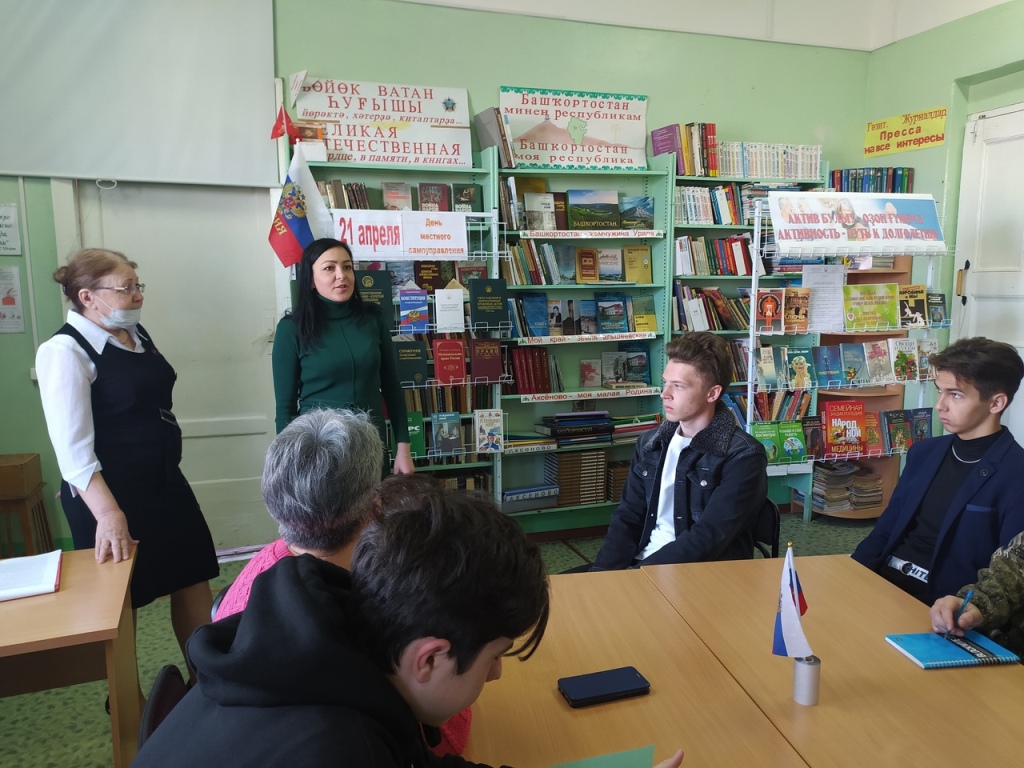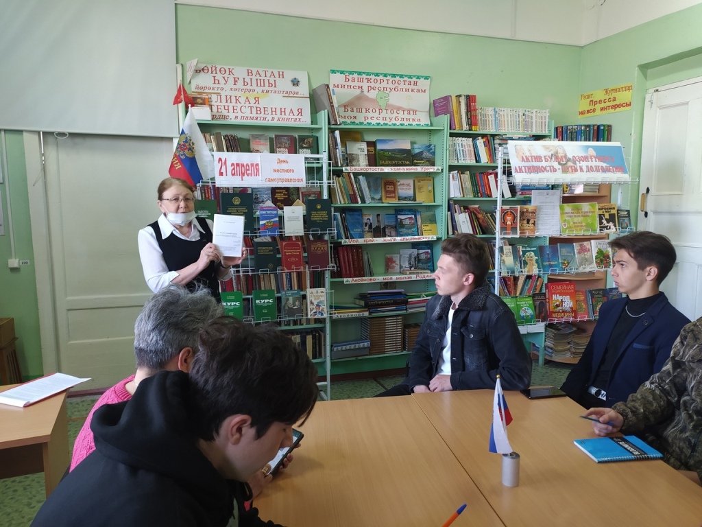 С целью знакомства с историей и современным состоянием местного самоуправления Аксёновская сельская модельная библиотека и администрация СП Аксёновский сельсовет провели Круглый стол «Открытый диалог» с участием главы СП Сидорова Д.А. и учащихся 10 и 11 классов МБОУ СОШ с. Аксёново. Работа Круглого стола началась в библиотеке, где в ходе беседы ребята узнали, что именно 21 апреля в 1785 году императрицей Екатериной II была подписана Жалованная грамота городам, положившая начало развитию законодательства, касающегося местного самоуправления в нашей стране, познакомились со структурой муниципалитетов и их правовой базой, с организациями и учреждениями, находящимися под контролем администрации СП. Был проведён обзор литературы, представленной на книжной выставке «21 апреля – день местного самоуправления». Затем была совершена экскурсия в администрацию СП Аксёновский сельсовет. Ребята познакомились со специалистами администрации, кругом их обязанностей. Третий этап Круглого стола состоялся в кабинете главы СП. Дмитрий Алексеевич Сидоров познакомил ребят с населёнными пунктами, входящими в СП, основными задачами, стоящими перед администрацией, об участии населения в жизни, благоустройстве сёл.