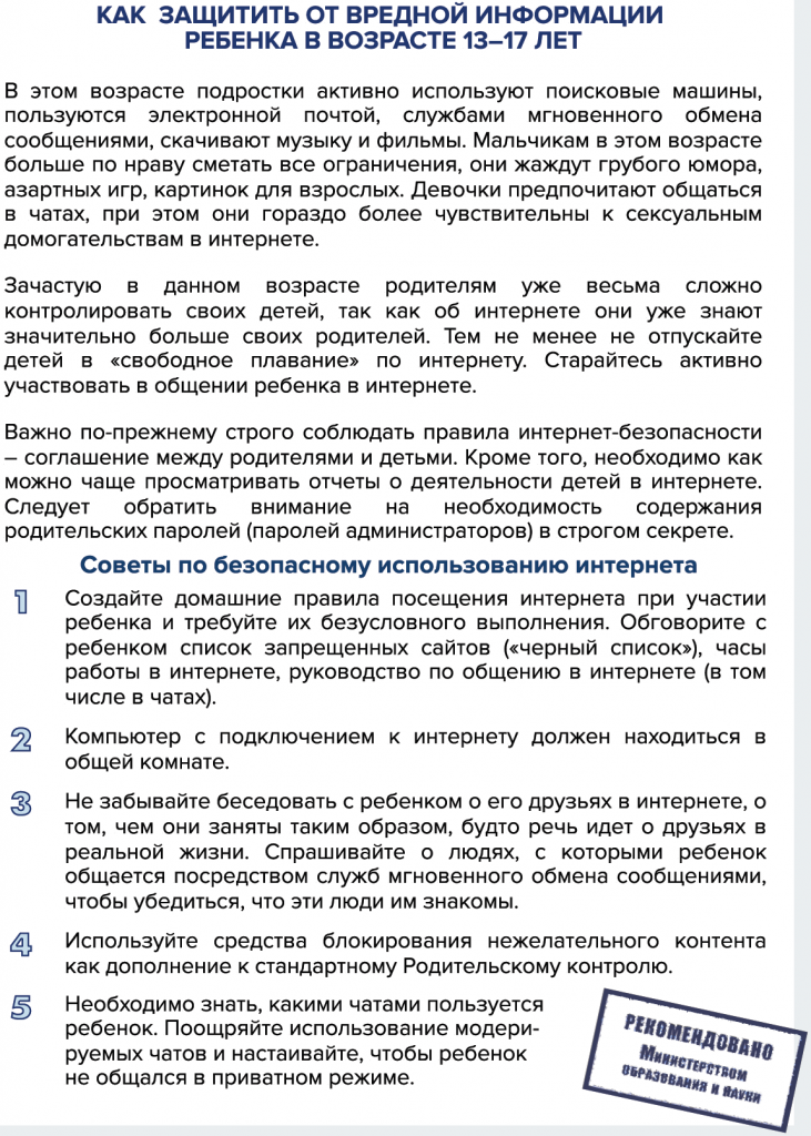 Советы по безопасности в этом возрасте от 13 до 17 лет