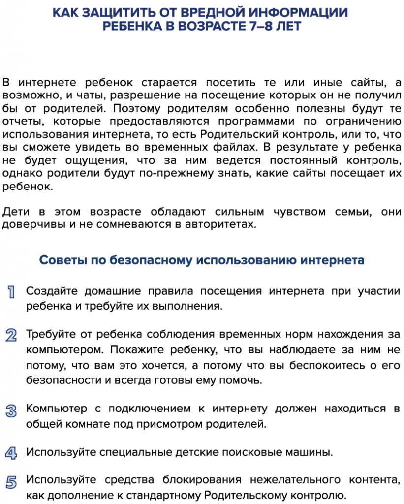 Советы по безопасности в сети Интернет для детей 7-8 лет