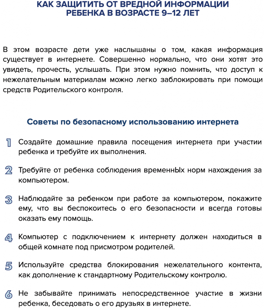 - Независимо от возраста ребенка используйте программное обеспечение, помогающее фильтровать и контролировать информацию, но не полагайтесь полностью на него. Ваше внимание к ребенку - главный метод защиты.