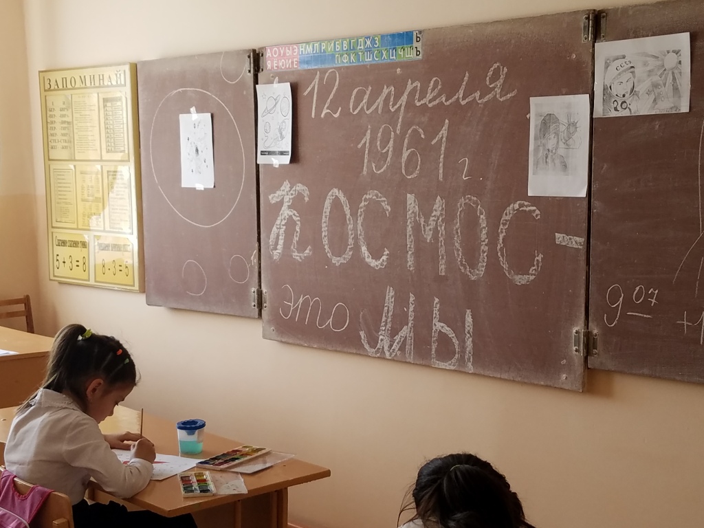 На классном часе мы много нового узнали об истории развития космонавтики. Готовясь к классному часу, нарисовали рисунки о космосе, приготовили стихотворения и выступления о Ю.А.Гагарине, С.П. Королеве и других великих людях, которые внесли большой вклад в развитии Отечественной космонавтики.