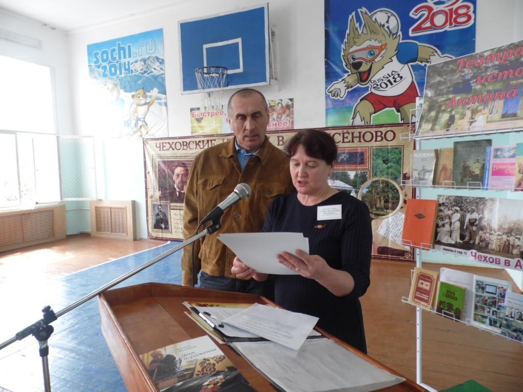Участников Чеховских чтений приветствовали танцевальная группа «Радость» и учащиеся МБОУ СОШ с.Аксёново Ч. Идрисов и В. Осипова. Гости мероприятия пожелали всем плодотворной творческой работы. Иксанова Г.А. вручила организаторам Чтений благодарственные письма и подарки от Регионального отделения общероссийской общественно-государственной организации «Российский фонд культуры», Уфимского городского отделения Союза краеведов России им. Флюры Ахмеровой центральной районной библиотеке, Аксёновской школе и сельской библиотеке. Подарил свою новую книгу школе и сельской библиотеке Карпухин И.Е.