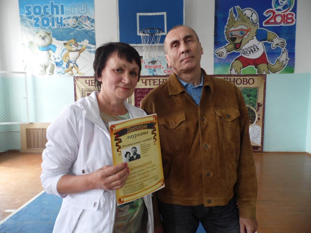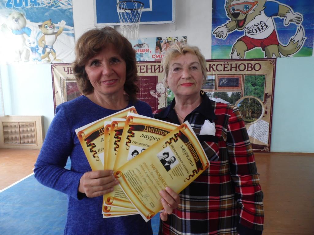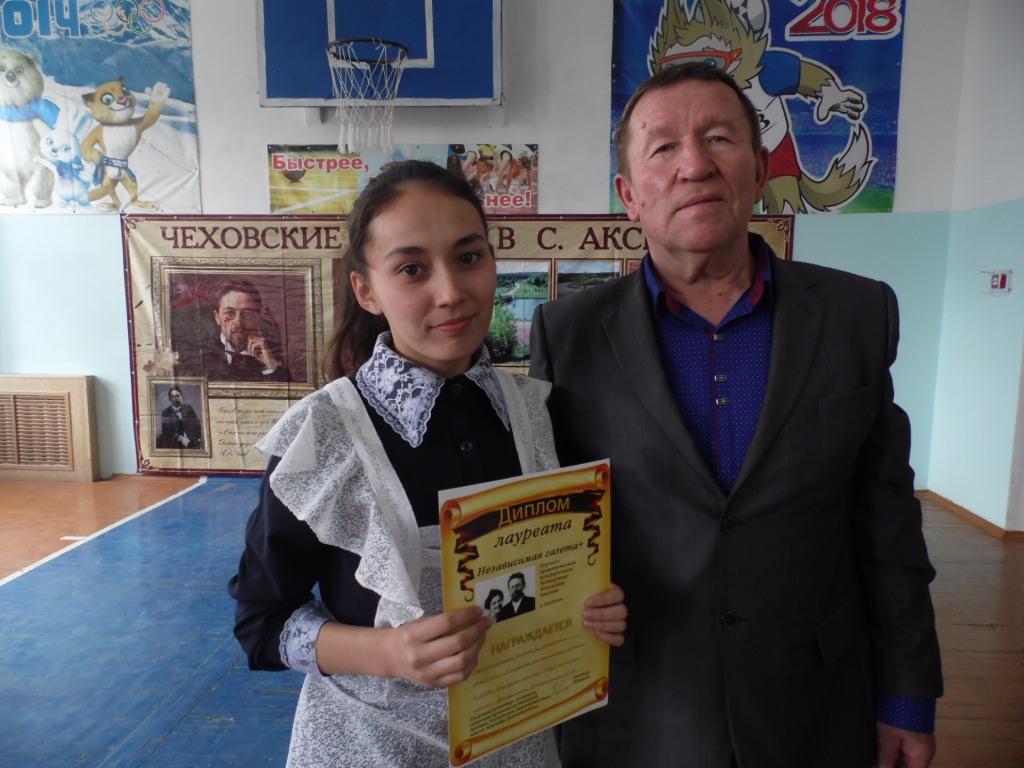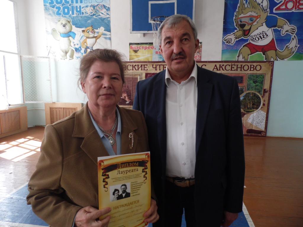 Еникеева Э. В. вручила награды Национальной библиотеки им. Ахмет – Заки Валиди РБ учащимся Аксёновской школы Хайруллиной Эльвине и Дмитриеву Никите, участникам республиканских конкурсов.