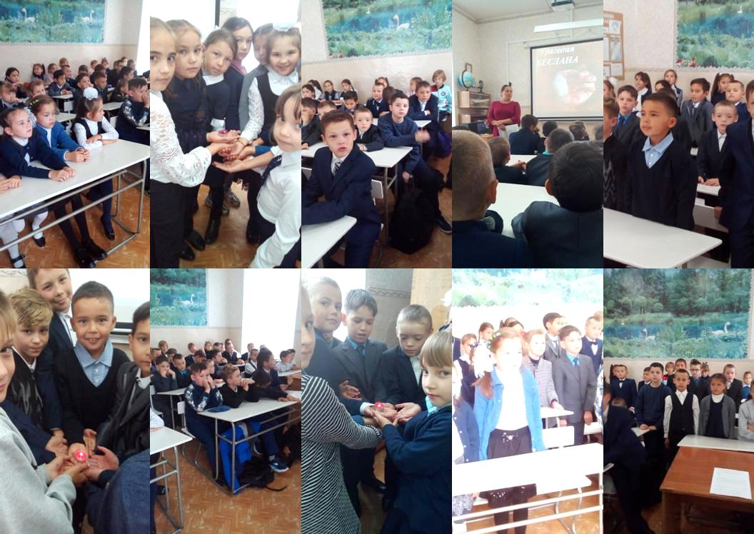 3 сентября для учащихся начальной школы прошёл классный час «Трагедия Беслана».