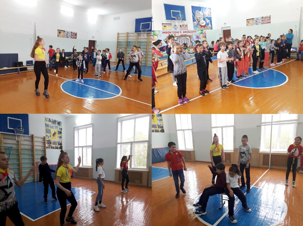 Лидеры пионерской дружины А.В. Никонова провели среди начальных классов игровые и танцевальные конкурсы. В конце мероприятия общий флэш-моб. Ребята очень активно принимали участие и зарядились энергией на целую неделю.