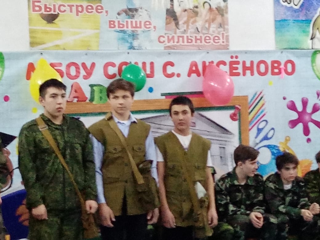 День защитника Отечества - это праздник людей с чистой совестью, праздник народа, умеющего постоять за себя и за свою землю. Поэтому традиционно в МБОУ СОШ с. Аксеново был организован вечер, посвящённая этому событию. Весь этот чудесный праздник стал признанием подрастающего поколения в любви и уважении к тем, кто стоит на страже нашей Родины. Данное мероприятие доставило эмоциональное и эстетическое удовлетворение и взрослым, и детям. Оно объединяло общими радостными впечатлениями, переживаниями родителей и детей, которые завтра по примеру своих дедов и отцов будут служить в Российской армии, защищая мир и покой родной земли. А мы, потомки доблестных воинов, должны поддерживать связь времён и стремиться преумножать героические традиции, заложенные нашим старшим поколением.
