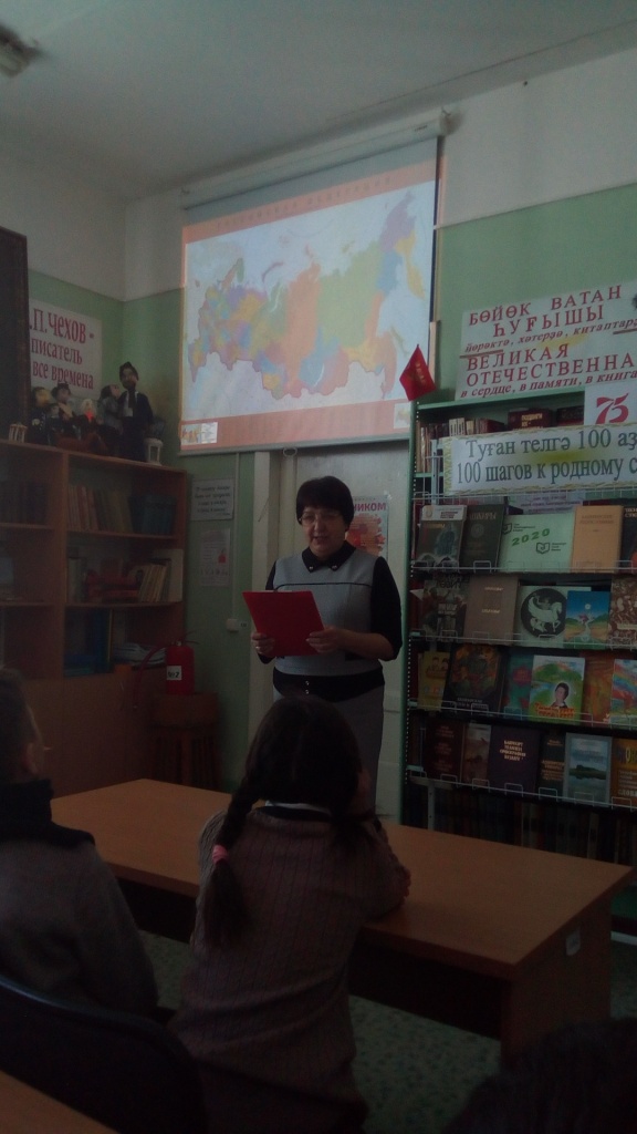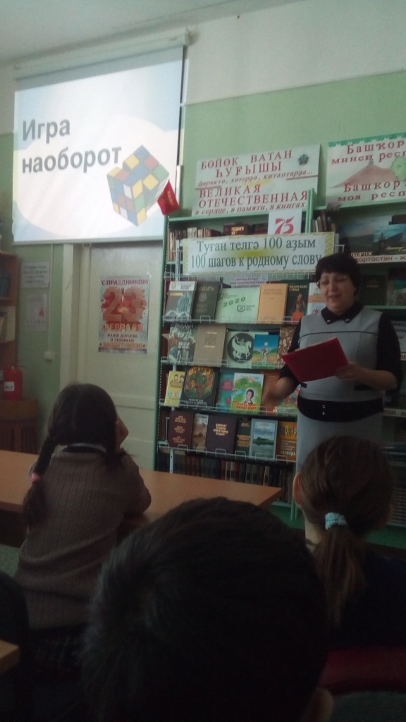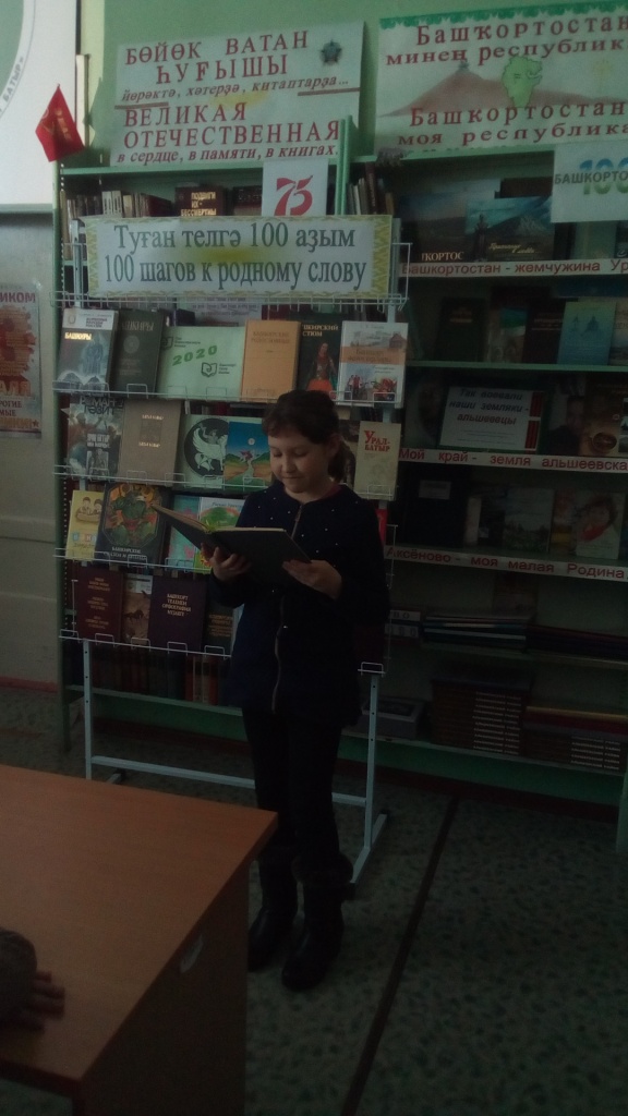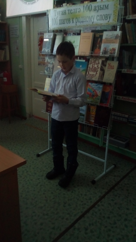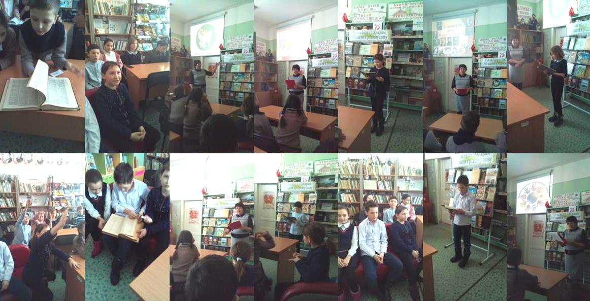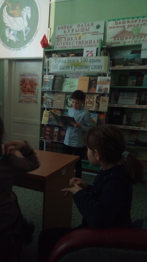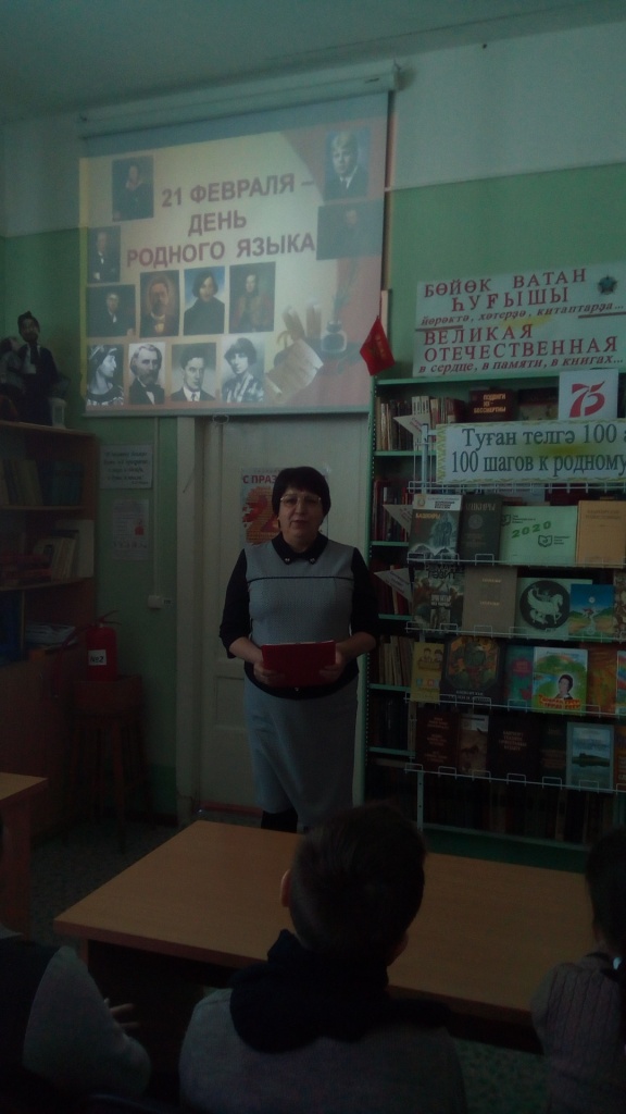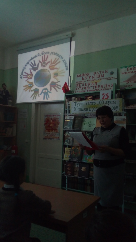 В этот день ученики 4 класса посетили сельскую библиотеку. Библиотекарь Мулюкова Ф.Я. рассказала о нашей многонациональной Родине, познакомила с народным эпосом «Урал батыр». Ребята отгадывали загадки разных народов, вспомнили народные сказки, работали со словарями. Учащиеся поняли, как важно знать родной язык.