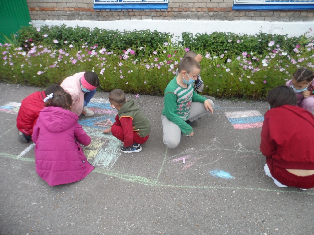 Юные читатели библиотеки в этот день познакомились с историей российского флага и поучаствовали в игре, в ходе которой проходили по станциям, выполняя задания, отгадывали загадки, рисовали на асфальте, собирали из цветов триколор, танцевали и получали за это баллы. Все участники квеста получили сладкие призы и отличное настроение, и, конечно же, пополнили свои знания о государственных символах РФ.