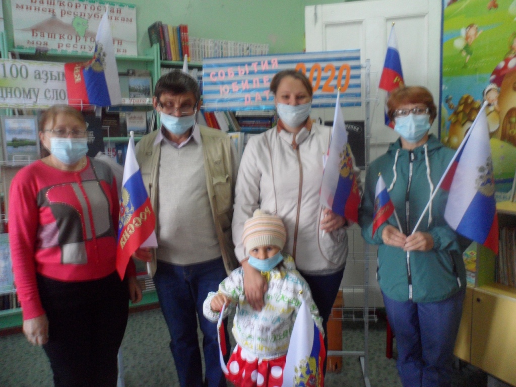 В течение дня посетители библиотеки имели возможность познакомиться с литературой книжной выставки «События. Юбилеи. Даты. 2020» и сфотографироваться с российским флагом.