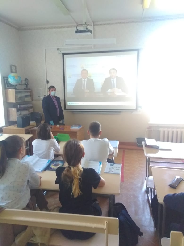 Урок проводили министр образования РБ Айбулат Вакилович Хажин и управляющиий Башкирским отделением Сбербанка Марат Мансуров.