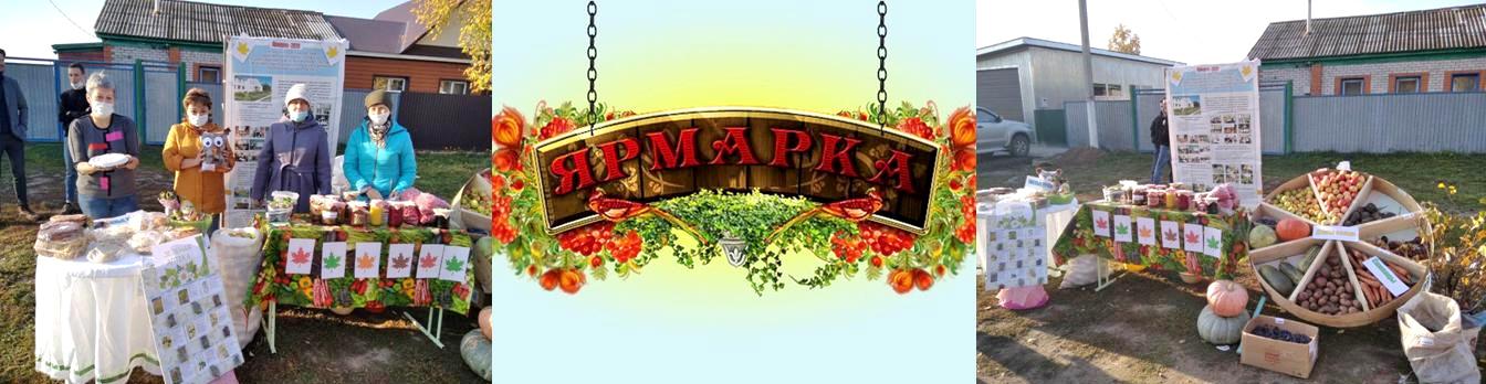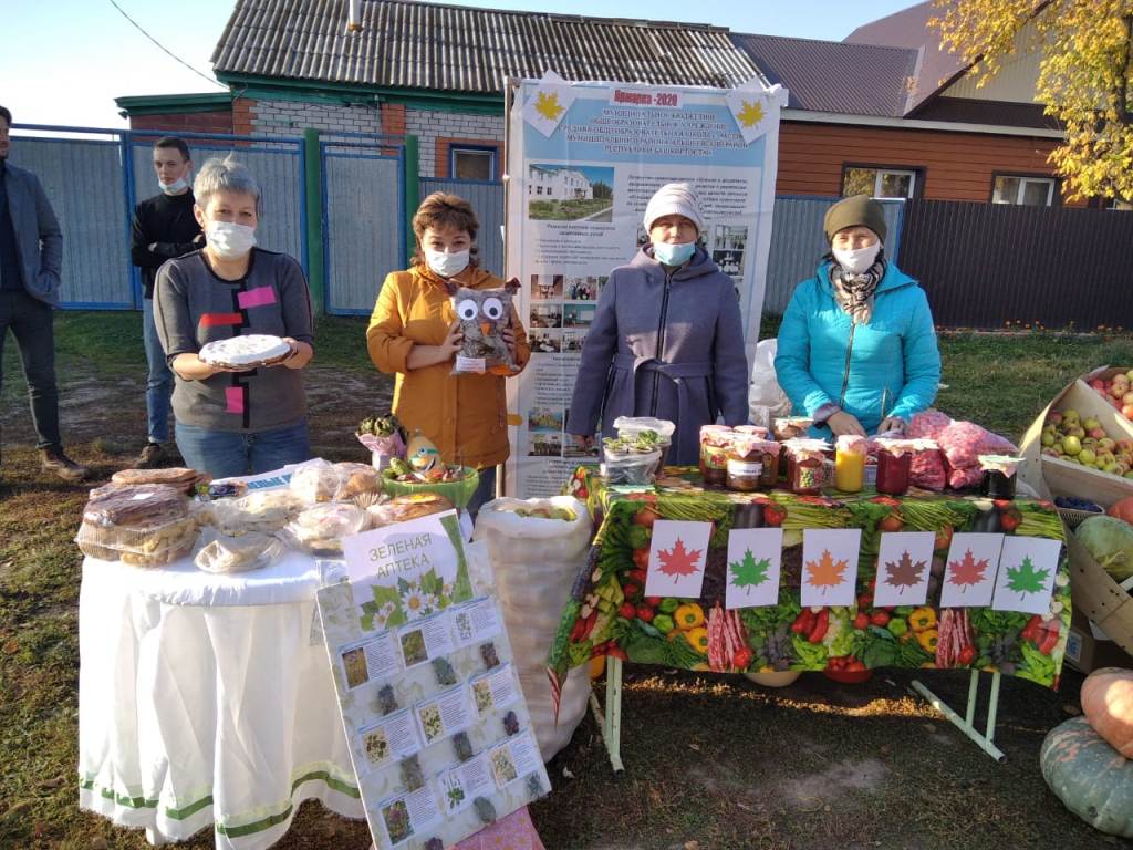 На ярмарке были представлены овощи, выращенные на учебно-опытном участке, саженцы пионов и ирги, яблоки из нашего сада. Учителя принесли свою выпечку и консервированные заготовки. Была представлена выставка «Зелёная аптека» и поделки из природного материала, выполненные на уроках технологии.