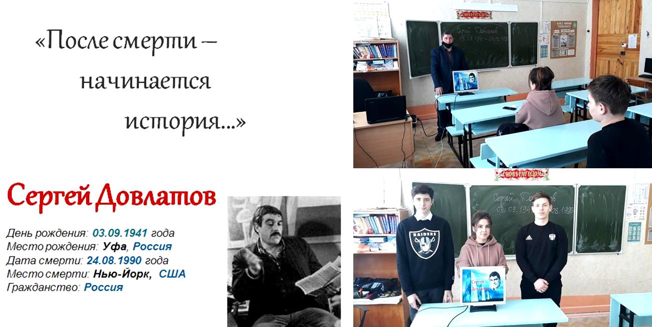 15 февраля в 10 классе прошёл классный час на тему "Сергей Довлатов Путь к славе".