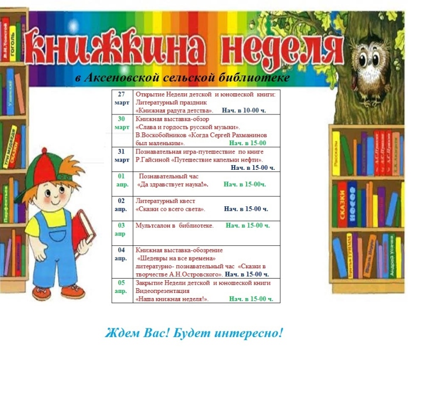 Это праздник весёлых приключений, новых литературных открытий, а также тесного творческого союза читателей и библиотекарей. 27 марта в селе Аксёново прошли «Книжкины именины», которые дали старт интересной и насыщенной программе в рамках Недели детской книги. Детвора приготовила к празднику инсценирование любимых стихотворений, превратив их в спектакль. Сельская библиотека подвела итоги чтения детей и наградила самых активных читателей!